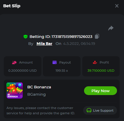 https://bc.game/sd/?sd=10KF79EECW6EC3 https://bc.game/sd/?sd=10KFUCU07BO4YB https://bc.game/sd/?sd=10KFVOTILB7CPF https://bc.game/sd/?sd=10KIHSYKVY9Q1F I had 949x on twerk with 0,10$ bet, but it shows only 1x payout... please check https://bc.game/sd/?sd=10KLBVBZM50QAB