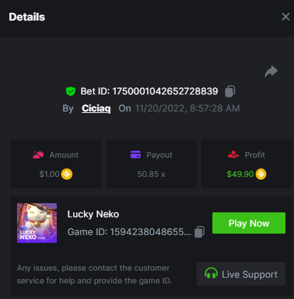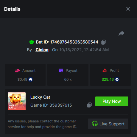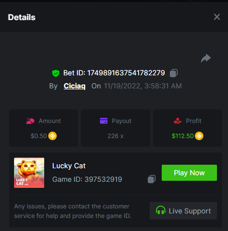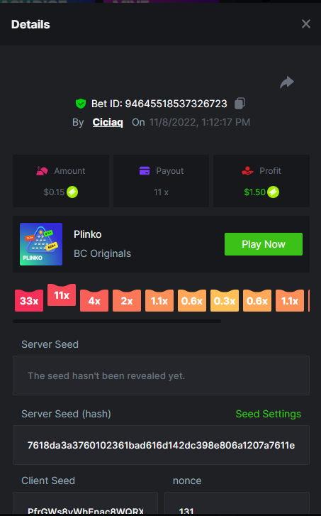 8. Wild Spin - 108.4x https://bc.game/#/sd/10XHK7U8901X5F Wild Crowns - 87.5x https://bc.game/#/sd/10XHQ8W683NGNN Book of Light - 170.5x https://bc.game/#/sd/10XHODMA7L49HV Lucky Cat - 226x https://bc.game/#/sd/10XHHEOEKPFJ0Z Ways of the Gauls - 151.6x https://bc.game/#/sd/10XGUKCQOVPHXV