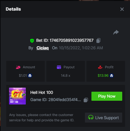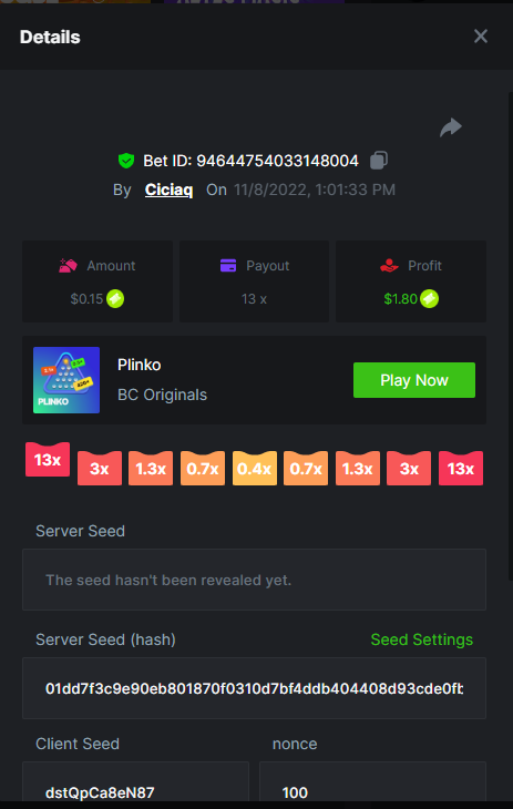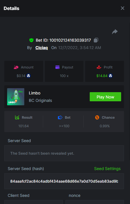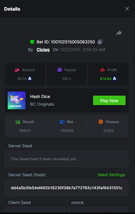5. Limbo - 100x https://bc.game/#/sd/10YQ2U2M44C8IB Hash Dice - 100x https://bc.game/#/sd/10YQ329RUJ8C2B
