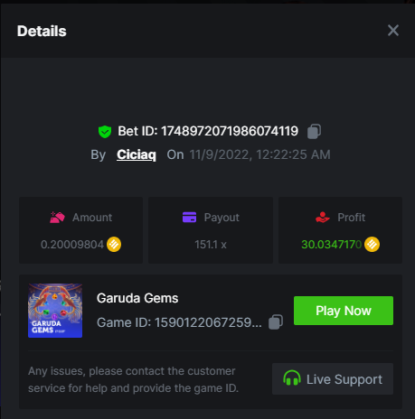 9. Majestic Treasures - 126.4x https://bc.game/#/sd/10WTBH7MBGOVMB The Queen's Banquet - 23.15x https://bc.game/#/sd/10WSZJJ2UUGT8Z Garuda Gems - 151.1x https://bc.game/#/sd/10WSC16Z49XGCZ Heist Stakes - 34x https://bc.game/#/sd/10WTPTXNF7G3YR