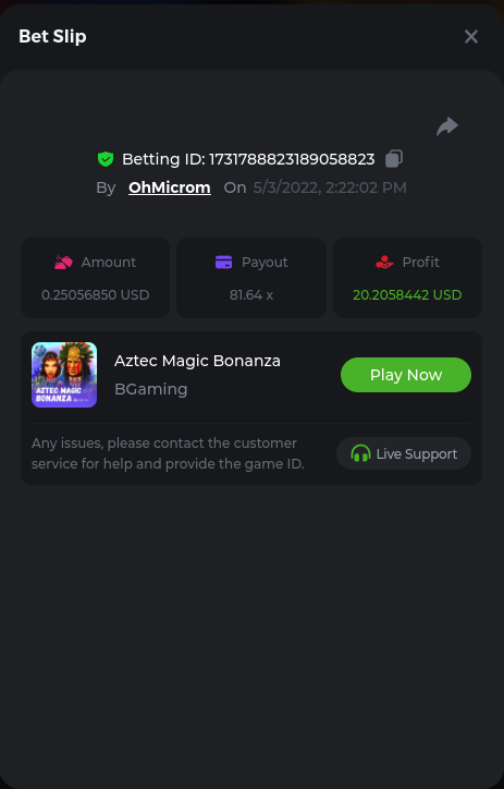 Aztec Magic Bonanza: https://bc.game/sd/?sd=10JQCR4DX2HTLF (x81.64)