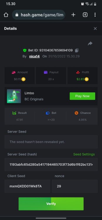 Kalel123 replied to BCGame_Maxim's topic in VIP Challenges