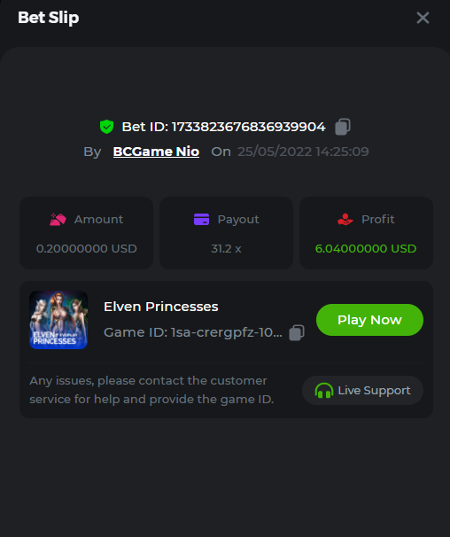 $2.5k Prestige Hash Dice Challenge #32 Welcome players, it's time to take chances! The challenge is the Hash Dice and participants will need to reach 16 exact target payouts, and all of them together will be summed up as 1 point (maximum 16 points). The Prize pool is $2,500 of which $500 will be reserved for the extra bonus. Get ready! Life is a gamble and you never know what comes next, so roll the dice! What's the Challenge? Complete as many of the following 16 payouts on Hash Dice. Must be a exact muliplier. | 20 | 30 | 33 | 50 | 66 | 71 | 99 | 200 | 250 | 444 | 500 | 555 | 900 | 1200 | 2500 | 3000 | Each payout you hit above counts as 1 point (Maximum 1 point for each payout). If there is a tie, the player with the higher average bet amount (in USD) shall be the winner. Minimum VIP There's no minimum VIP level Eligibility to Win Prize Win at least 2 payouts to qualify. Minimum Bet Size $0.20 USD equivalent Eligible Coins All cryptocurrencies are eligible (excepting JB) Available Prizes 1st Place....... $500 2nd Place..... $300 3rd Place...... $200 4th Place......$100 5th Place......$50 6th-10th.........$30 All other participants.........$700 Bounty Prize...$500, equal share. EXTRA BOUNTY Post a winning bet with 777x multiplier or more and receive an equal share of the $500 prize pool! Original rules apply with all minimum requirements. How to Enter To enter, copy the link of the bet you'd like to submit. Once you've copied it, paste it as a reply to this thread like so: Link: https://bc.game/sd/?sd=10LM00ZSRP3IMR In the same post, upload a screenshot of your win by clicking the game ID WITH VIEW IN USD mode ENABLED (accessible at the bottom of dropdown menu for your wallet up top. This way, we can ensure that your bet indeed met the minimum requirement at the time of placing it: Link: https://bc.game/sd/?sd=10LM00ZSRP3IMR Please combine all of your hits together in a SINGLE post. Edit your existing post for additional hits, don't create a new post. Each eligible entry must have the Bet Slip URL, failure to include it will disqualify participation in the event. Bet Slip image is not mandatory. Bets must be posted within 24 hours of placing bet in order to keep things fair for everyone. Bets must be made during the specified time window stated above. This thread will lock automatically when the time period is over. One (1) entry per household. Anyone found attempting to win multiple prizes will be disqualified from this challenge as well as all future challenges. Failure to follow instructions will result in your submission being null and void. By entering this challenge, you acknowledge that BC.Game has the final decision on results and placement. Payouts will be made within 72 hours of challenge completion, please be patient, we promise you that we haven't forgotten. We check and double check to make sure the rightful winners receive their prize. Prizes will be paid out in BCD. Good luck everyone!
