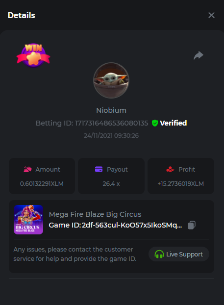 4. A warm welcome back, this week we're going to Playtech Games slot event, with a major $4,000 prize pool! Sky's the limit - get the highest possible multiplier you can on the slots listed below! The top 3 highest multipliers posted for each slot will win one of the ranked prizes! To spice up the challenge, all players who complete the side bounty will receive a share of $400 (details further down). Eligible Games Get the highest multiplier on any (or all) of the 4 slots below Buffalo Blitz 2 Epic Ape 2 Big Circus Wheels of Olympus Each player can only win 1 prize per slot, if a player submits more than 1 entry for the same slot, only the highest multiplier will count. Can I win a prize for each of the slots? YES - you can win one prize on each of the 4 slots listed + the bounty prize. Minimum VIP Tier Must be VIP08 or higher in order to enter this challenge. Minimum Bet Size Buffalo Blitz 2 - $0.20 Epic Ape 2 - $0.20 Big Circus - $0.20 Wheels of Olympus - $0.30 Eligible Coins All coins are eligible (excepting JB) Available Prizes Buffalo Blitz 2 - 1st place $500 2nd place $250 3rd place $150 Epic Ape 2 - 1st place $500 2nd place $250 3rd place $150 Big Circus - 1st place $500 2nd place $250 3rd place $150 Wheels of Olympus - 1st place $500 2nd place $250 3rd place $150 50x BOUNTY - Post a bet that shows EXACTLY 50x payout on any of the 4 slots within the timeframe of this challenge and receive a share of a $400! If nobody gets exactly 50x the person/s closest to 50x will win this bounty! How to Enter To enter, copy the bet ID of the bet you'd like to submit. Once you've copied it, post it as a reply to this thread like so: Betting ID: 1717316486536080135 In the same post, upload a screenshot of your win by clicking the game ID WITH VIEW IN USD mode ENABLED (accessible at the bottom of dropdown menu for your wallet up top. This way, we can ensure that your bet indeed met the minimum requirement at the time of placing it: Example post - Betting ID: 1717316486536080135 Good luck everyone!