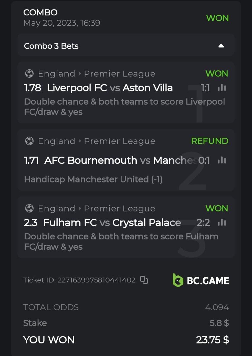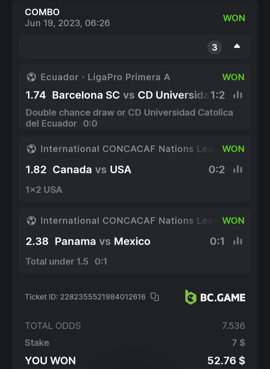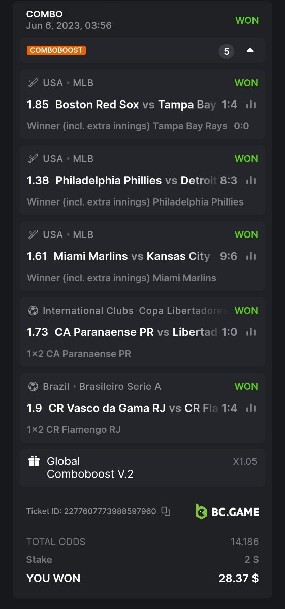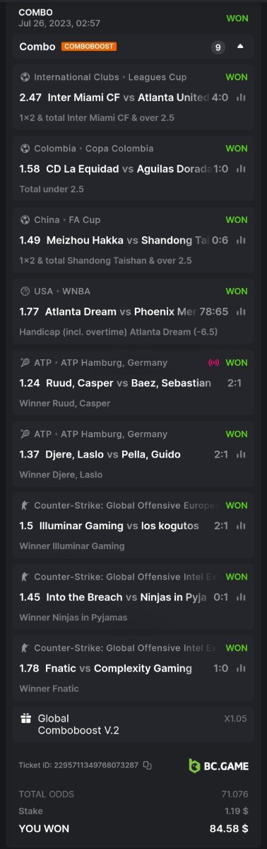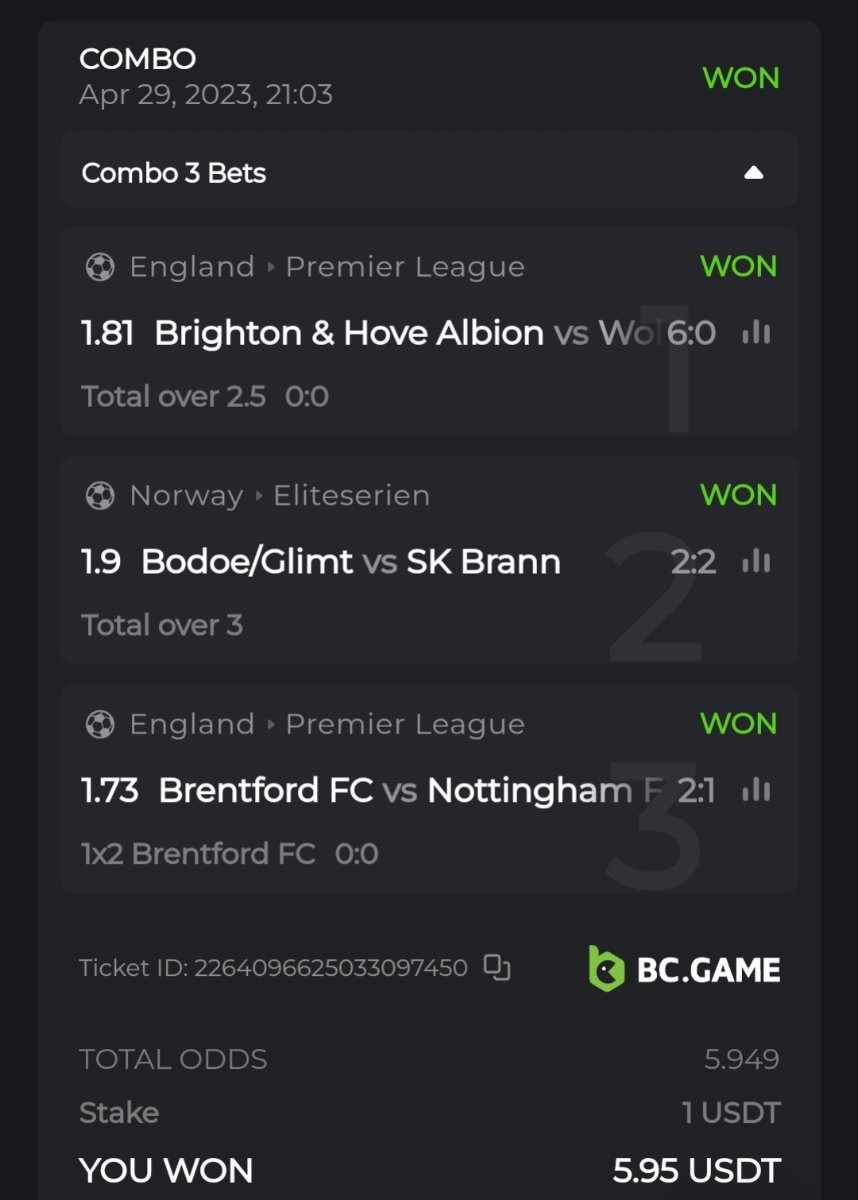 1. Bounty odds ×71 Ticket ID: 2295711349768073287 ---------------------------------------------------- 2. Ticket ID: 2296232934522368124