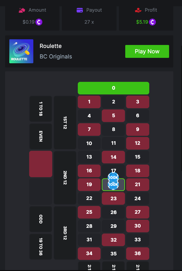 $1.5k Prestige Roulette Challenge #73 DURATION: 27th FEB - 2nd MAR 09:00 am UTC What's the Challenge? Participants must win as many consecutive bets as possible by betting on either one of RED/BLACK on in-house ROULETTE & ROULETTE MULTIPLAYER game. Consecutive bets must be of the same color to validate the entry. Rank will be determined by the largest amount of consecutive bets, the longest sequence will be in 1st place and successively. In the event of a tie, the advantage will be given to the highest average bet in dollars. In the event of a tie again, the first bet placed will have the advantage. How to Enter To enter, copy the link of the bet you'd like to submit. Once you've copied it, paste it as a reply to this thread like so: Link: https://bc.game/#/sd/114DT27BR0T1XV In the same post, upload a screenshot of your win by clicking the game ID WITH VIEW IN USD mode ENABLED (accessible at the bottom of dropdown menu for your wallet up top. This way, we can ensure that your bet indeed met the minimum requirement at the time of placing it: https://bc.game/#/sd/114DT27BR0T1XV Minimum VIP Tier Must be VIP04 or higher in order to enter this challenge. Minimum Bets Win at least 4 consecutive bets on same colour to qualify. Minimum Bet Size $0.20 USD equivalent Eligible Coins All cryptocurrencies are eligible (excepting JB and BCL) Available Prizes Positions 1st 2nd 3rd 4th 5th 6th-10th 11th-20th Bounty Prizes $500 $250 $125 $75 $50 $125 $125 $250 EXTRA BOUNTY Get 3 consecutive wins with 0 (Green) and receive an equal share of the $250 prize pool! Original rules apply with min bet, minimum VIP. GENERAL Rules Please combine all of your hits together in a SINGLE post. Edit your existing post for additional hits, don't create a new post. Each eligible entry must have the Bet Slip URL, failure to include it will disqualify participation in the event. Bet Slip image is not mandatory. Changing seed in between bets is not allowed. This will lead to disqualify from event. Bets must be posted within 24 hours of placing bet in order to keep things fair for everyone. Bets must be made during the specified time window stated above. This thread will lock automatically when the time period is over. One (1) entry per household. Anyone found attempting to win multiple prizes will be disqualified from this challenge as well as all future challenges. Failure to follow instructions will result in your submission being null and void. By entering this challenge, you acknowledge that BC.Game has the final decision on results and placement. Payouts will be distributed after the event is finished. Please note that it could take up to 4 days after the completion of the event.