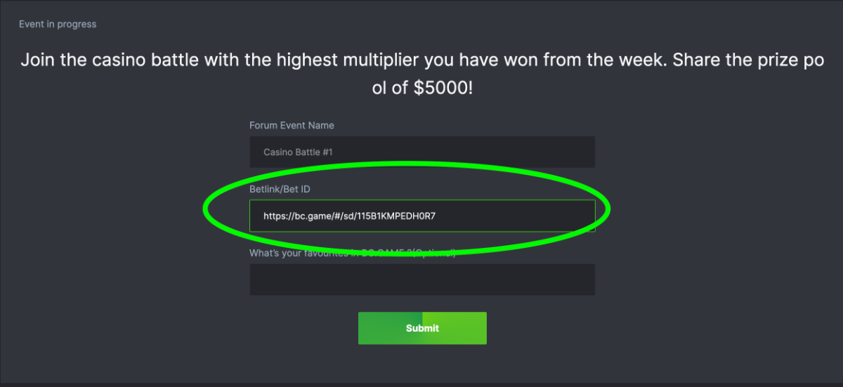 $1.5k Prestige Hash Dice Challenge #76 DURATION: 9th MAR - 13th MAR 12:30 pm UTC Welcome players, it's time to take chances! The challenge is the Hash Dice and participants will need to reach 16 exact target payouts, and all of them together will be summed up as 1 point (maximum 16 points). The Prize pool is $1,500 of which $250 will be reserved for the extra bonus. Get ready! Life is a gamble and you never know what comes next, so roll the dice! What's the Challenge? Complete as many of the following 16 payouts on Hash Dice. Must be a exact multiplier. | 20 | 33 | 45 | 55 | 66 | 75 | 88 | 222 | 305 | 444 | 555 | 666 | 888 | 1205 | 2500 | 3000 | Each payout you hit above counts as 1 point (Maximum 1 point for each payout). If there is a tie, the player with the higher average bet amount (in USD) shall be the winner. How to Enter To enter, copy the link of the bet you'd like to submit. Once you've copied it, paste it as a reply to this thread like so: Link: https://bc.game/#/sd/11516JYC3GIH3N In the same post, upload a screenshot of your win by clicking the game ID WITH VIEW IN USD mode ENABLED (accessible at the bottom of dropdown menu for your wallet up top. This way, we can ensure that your bet indeed met the minimum requirement at the time of placing it: https://bc.game/#/sd/11516JYC3GIH3N Minimum VIP There's no minimum VIP level Eligibility to Win Prize Win at least 3 payouts to qualify. Minimum Bet Size $0.10 USD equivalent Eligible Coins All cryptocurrencies are eligible (excepting JB) Available Prizes Positions 1st 2nd 3rd 4th 5th 6th-10th 11th-20th Bounty Prizes $500 $250 $125 $75 $50 $125 $125 $250 EXTRA BOUNTY Post a winning bet with 777x multiplier or more and receive an equal share of the $250 prize pool! Original rules apply with all minimum requirements. GENERAL TERMS Please combine all of your hits together in a SINGLE post. Edit your existing post for additional hits, don't create a new post. Each eligible entry must have the Bet Slip URL, failure to include it will disqualify participation in the event. Bet Slip image is not mandatory. Bets must be posted within 24 hours of placing bet in order to keep things fair for everyone. Bets must be made during the specified time window stated above. This thread will lock automatically when the time period is over. One (1) entry per household. Anyone found attempting to win multiple prizes will be disqualified from this challenge as well as all future challenges. Failure to follow instructions will result in your submission being null and void. By entering this challenge, you acknowledge that BC.Game has the final decision on results and placement. Payouts will be distributed after the event is finished. Please note that it could take anywhere between 24 hours to 7 days after the completion of the event.