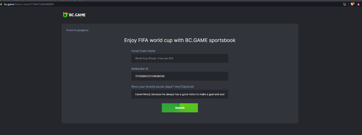 I've joined the forum event; Now it's your turn to win generous rewards from BC.GAME! Ticket ID: 2215698232229638206