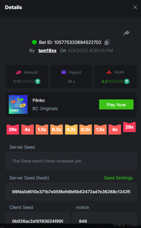 6. Hard 1 . https://bc.game/#/sd/1174AQM5LN2AZ7 Medium 4. ID BET 2256305731370365103 Easy 1 https://bc.game/#/sd/1174B5I5H1J1G3 2 https://bc.game/#/sd/1174B98421CQOJ 5. https://bc.game/#/sd/1174CSRDPKKJ6B 7. ID BET 2256305731370365136