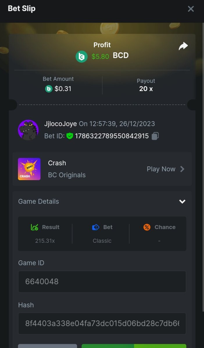 JjlocoJoye replied to BCGame_Maxim's topic in Past Challenges