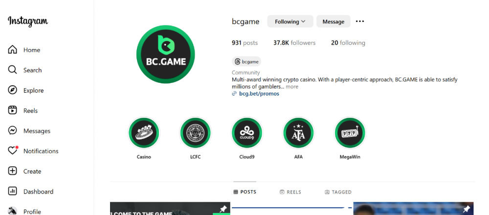 2-Follow BC.GAME on Instagram, take a screenshot, and share it with your IG username in the forum!