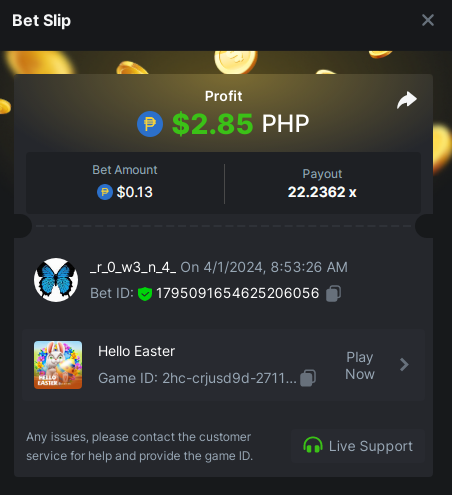 2. Easy 1. x10 on Crash https://hash.game/#/sd/11VI823ISRFJIZ 2. x10 Classic Dice https://hash.game/#/sd/11VI88I7W6T8GV 3. x10 Run Away Zombies https://hash.game/#/sd/11VTPS0KN3PO4F 4. Tie x9 baccarat https://hash.game/#/sd/11VTPZEPZ8BLV7 5. x20 John Wild https://hash.game/#/sd/11VTPD443M218F 6. x15.5 Twist https://hash.game/#/sd/11VI934RO4QHC7 7. x1.5 sportbet Ticket ID: 2386158083282968698 8. x20 Hello Easter https://hash.game/#/sd/11VTR6HHYA0QUF 9. x30 Lucky Easter https://hash.game/#/sd/11VTRQEXLYTO4F 10. Verify email and phone + 2fa enable DONE long time ago MEDIUM 1. x36 roulette single https://hash.game/#/sd/11VI9AHEO9JQ8R 2. x76 plinko https://hash.game/#/sd/11VP9X2NW5069R 3. x99 ring of fortune https://hash.game/#/sd/11W1MFROOELI13 4. x2 sportsbet Ticket ID: 2386164965280190472 5. x60 video poker 6. x50 keno https://hash.game/#/sd/11VPA9QSVKA5WF 7. blackjack redcards 8.x90 Easter heist 9. x100 Easter Eggs 10. x100 Bonus Bunnies HARD 1. x29.7 wheel https://hash.game/#/sd/11VI9ZJNQXEP3V 2.x420 Plinko https://hash.game/#/sd/11VUVGN6EUP9F7 3. x500 Limbo https://hash.game/#/sd/11VS3AO9H4903J 7. x259 keno https://hash.game/#/sd/11W8ORBGDOM6UJ