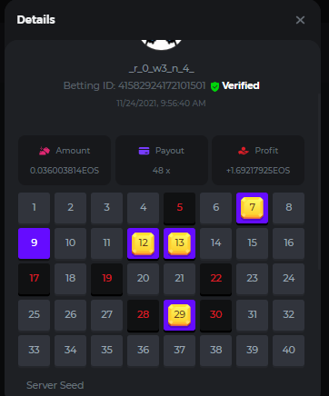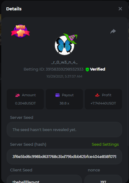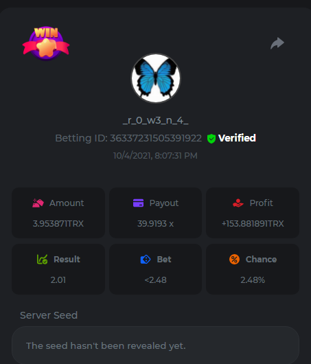 Bet ID: #36337231505391628 Bet ID: #36337231505391872 Bet ID: #36337231505391875 Bet ID: #36337231505391880 i cant really figure how to set the x40 pyout so i did this two bets. if i set it at x40 this is the payout that shows Bet ID: #36337231505391922 and if i try to set it at 2.47win chance this wil be the x40 Bet ID: #36337231505391945 Bet ID: #36337231505392038 Bet ID: #19688568171528907 36747856148693076- 53 replies