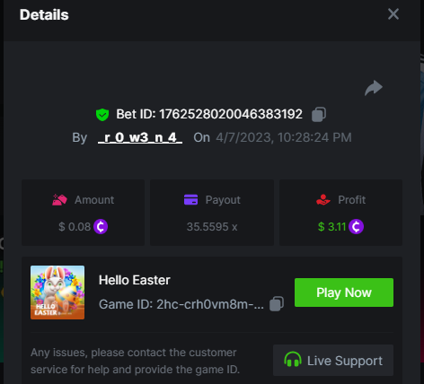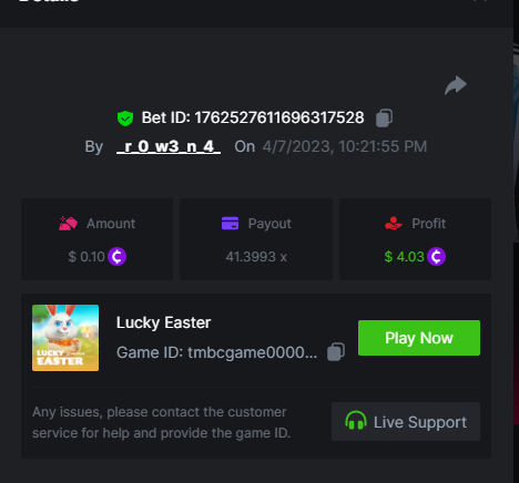 6. EASY 1. Classic Dice x5 https://bc.game/#/sd/1172TUVX2L3H1V 2.Baccarat Tie https://bc.game/#/sd/11732KXMI1SVF7 3. Crash x10 https://bc.game/#/sd/11734RSKY2XMHF 4. Egyptian x10 https://bc.game/#/sd/1172VH8RHDJ7KJ 5. Oriental beauties x20 https://bc.game/#/sd/1173478JVT0HSJ 6. Cave Plunder x7.5 https://bc.game/#/sd/1172V4QP59YM8J 7. sports 1.5 odds Ticket ID: 2256135545690394958 8. Hello Easter x20 https://bc.game/#/sd/11733P4GUHJUOJ 9. Lucky Easter x30 https://bc.game/#/sd/11733CVSKO9IQB 10. DONE MEDIUM 1.Roulette Single x36 https://bc.game/#/sd/1172ULBVHZUA6R 2. Plinko x76 https://bc.game/#/sd/11732A4K12DES3 3. ring of fortune x99 https://bc.game/#/sd/11749XIMLUF9XV 4. Sport x2 odds Ticket ID: 2256137505235669078 6. Keno x50 7, 30 ,8 https://bc.game/#/sd/11732XQ1RPO6XF 9. Easter eggs x100 https://bc.game/#/sd/117JA802HENGNN 10. Bonus bunnies x100 https://bc.game/#/sd/117HE08BW09JIR HARD 1. Wheel x49.5 https://bc.game/#/sd/1172U64K26OT1V 2. Plinko x420 https://bc.game/#/sd/117C0SS64GF6KZ 3. limbo x500 https://bc.game/#/sd/1174AHPHKU5N2R 6. Mines https://bc.game/#/sd/1177HA4DV5XBTF