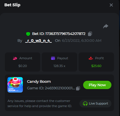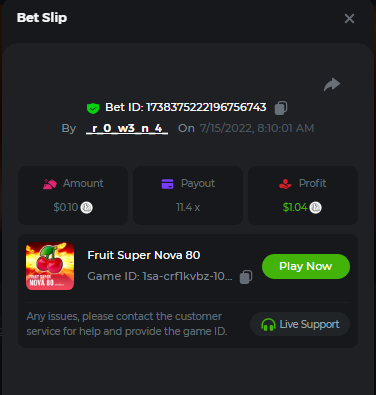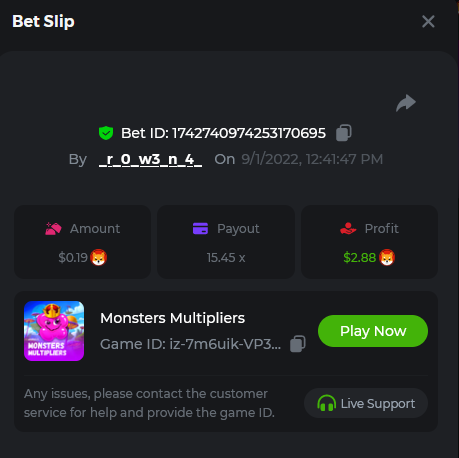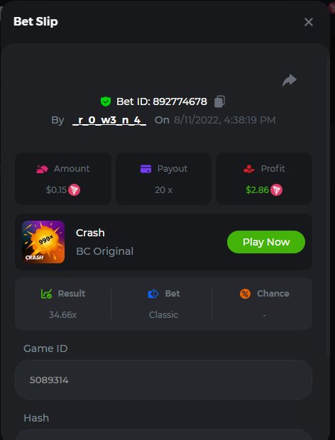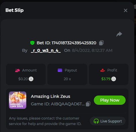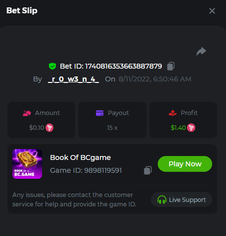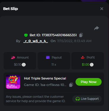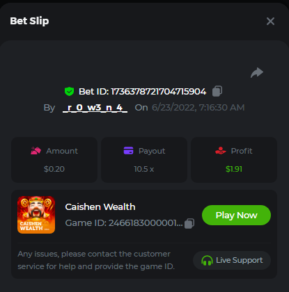 x100 https://bc.game/sd/?sd=10SDQE72Z5826R x11 https://bc.game/sd/?sd=10SDQM9NQ2RZF7 x81.5 https://bc.game/sd/?sd=10SDQYHSOHUHOZ x180 https://bc.game/sd/?sd=10SDT1IM7G8R2R x17 https://bc.game/sd/?sd=10SDRB8WUCUEXF 17.10 is considered as x17 right?Gamemaster @Niobium oh never mind someone told me the x17 is in tiles classic hehehe all good now got covered. got 4 entries -