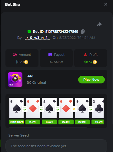 Hilo ang paborito Kong laro Kay BC.game Kasi malaki ang chances of winning at mabilisan ang profit Kung agad lalabas Yong hunting ko Ng high risk odds. Hehe