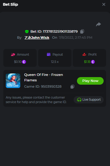 4. Queen Of Fire - Frozen Flames https://bc.game/sd/?sd=10OB4LZ3ZQL6HF