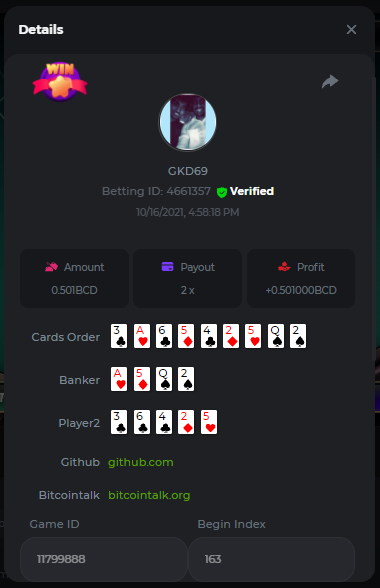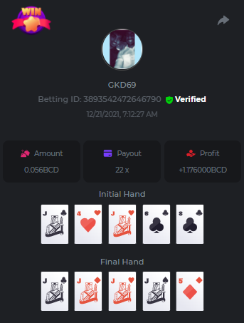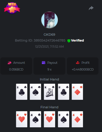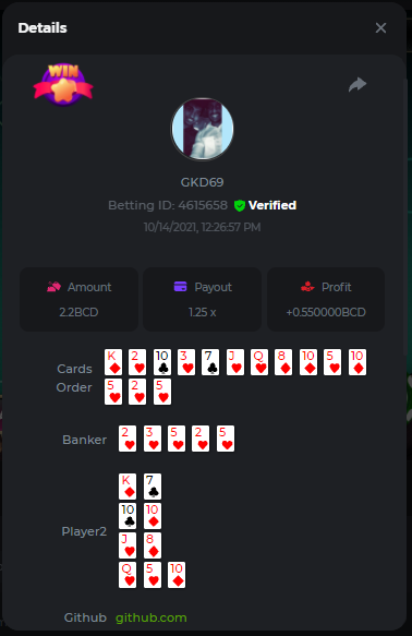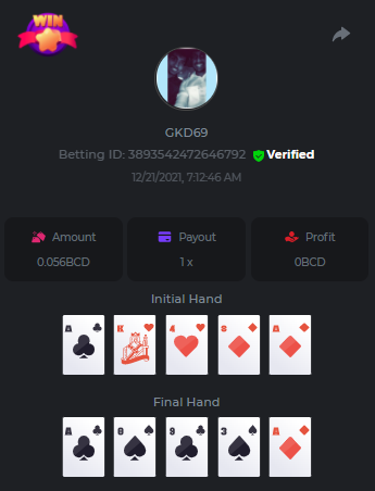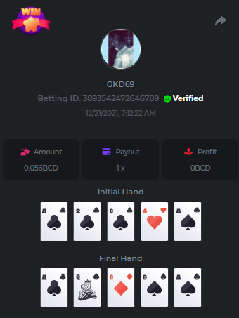 Betting ID: 4689516 (14 cards) https://bcgame-project.github.io/bcgame-blackjack/?s=YYOvj4oS%2FeLYG4tUhexnTsvIoj3ZEmAdggATvQi9Z3YEncIAbhfpyw1Q5kfB3njzOp55Ni9I53TONExCvl8Wh8sPK5PjDKpUcmtf2JWeGgrek38pxp1XVxuyB7PIq6%2FEMZh6qgLVUNZYTS3eZPcOUC0U2rc1YLWPBsSgP57nZMQ%3D&i=222768&range=127,141 ____________________________________________________________________________________________________ Betting ID: 4615658 (14 cards) https://bcgame-project.github.io/bcgame-blackjack/?s=lICcvpFFS9u%2BNgYd5yue6RN3tDUpgPdRnwerVoLeM06H8yTxmw5vvpXVpdzF7RjT%2Fh5MXTEwrdzl7CyC6rZ3y0Spf3mJ%2FlsPQqoRd2MT1NAct4FGI9H31aOGI0Lx85Wi70N4TYe1pS0Jrhyf5O8a%2B6uoNl67dsEY8z%2FTCYq9%2Bjw%3D&i=221653&range=237,251 Adding another entry cus im not sure if its eligible, however the bet is 1.25x and so it is a win technically. @digitaldash any further information about various payouts would be great, cus in BJ with insurance, splits etc the payouts could vary. ____________________________________________________________________________________________________ MASTER BONUS COMPLETED Betting ID: 4661357 (Player - 2,3,4,5,6) https://bcgame-project.github.io/bcgame-blackjack/?s=R6TLzK7mddp59iehua2Mu8Ey26Pv7MvpHXJUciGx1okbhSFQ3ZGYvJz0f%2FSQX0jxEQAWELPpD1Dgb2o7dYaEYikuSudEDMkptn0kboQoXyBQh2872kY7Z5QurjcR0tb6UKn8zfSwqeMQWZtysIwhrx1z955mrBYZDKZ3XfjCBZU%3D&i=222338&range=163,172