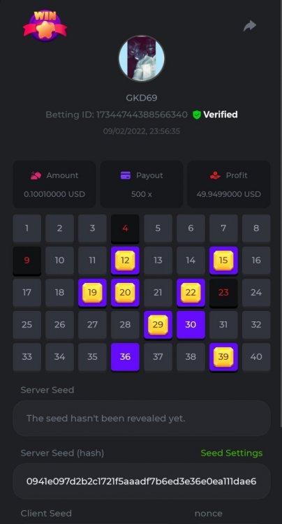 Bet ID: #21679843858974155 (10x) Bet ID: #21679843858974180 (20x) Bet ID: #21679843858974264 (30x) Bet ID: #21679843858974285 (40x - Not sure why it always shows me only 39.9193x O.o) Bet ID: #21679843858974292 (50x)- 53 replies