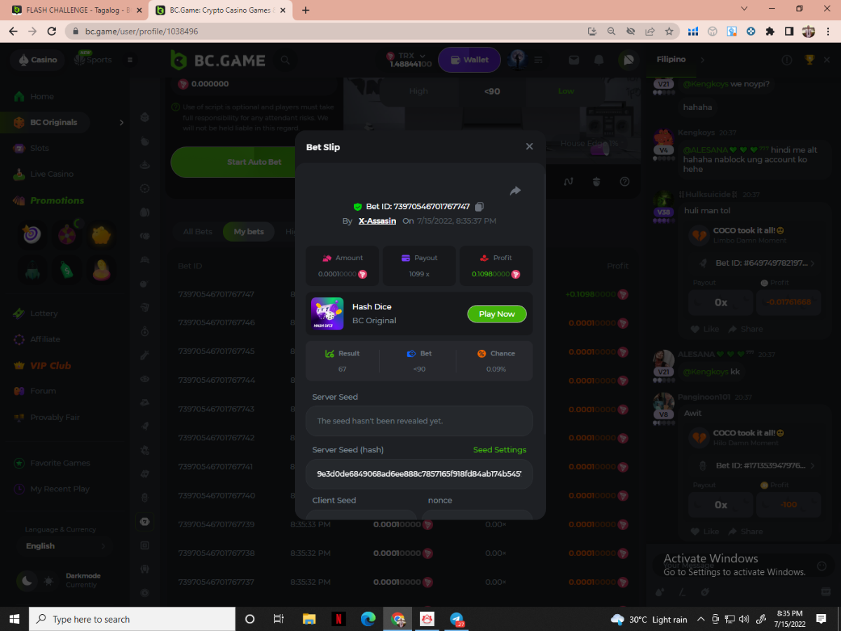 Classic Dice - (Autoroll bet mode.) Tyaga ang puhunan dito. Di pwede yung mainipin sa larong ito. Ever since, eto na talaga laro ko mula nung matutong pumasok sa mga palaruan ng perang kryptohiya. Mataas ang porsyento netoh na manalo, matuto ka lang aralin ang bilang ng pula o lose streak kung tawagin. At syempre, need mo lagyan nang data ang "stop on win"', kung ilan lang nais mong mapanalunan, ganun din sa "on lose" kung ilang % dapat idagdag tuwing talo ka, at ang pinakahuli, ay wag kalimutan ang "stop on lose" yung kaya mong ipatalo sa bankroll o funds na meron ka. Dapat 1/4 lang ng bankroll ilagay doon. Kapag inabot yun, nasa iyo na ang pagpapasya kung itutuloy ang laro o hindi. Yun ang kagandahan nun, sa larangan ng sugal o sa totoong buhay, need mo din umatras sa hamon ng buhay kung kinakailangan. Last but not da least 'ika nga nila, sa sugalan, need talaga bak ap ng funds.. pag naubos ang nilalaro mong token, sa larong dice, hangga't may bala may berde sa dulo.. (maliban na lang, if lag talaga ang network mo)!