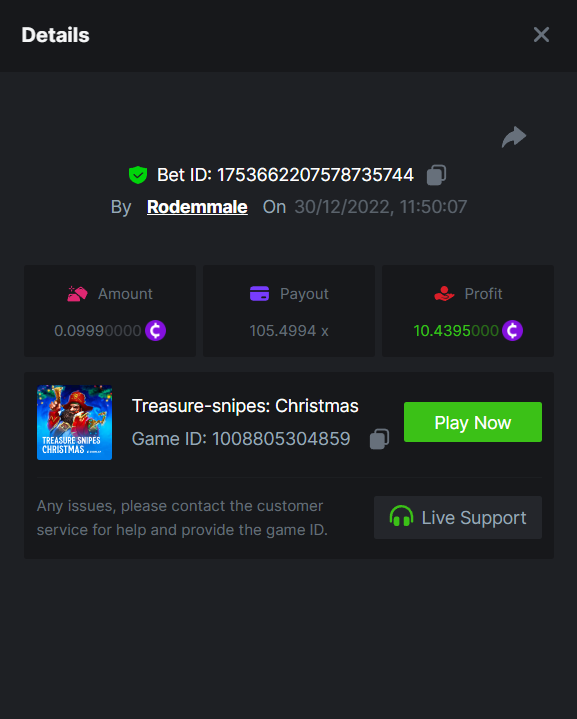 7. Treasure-Snipes: Christmas x105.5 https://bc.game/#/sd/110CM3AEZPAVIR