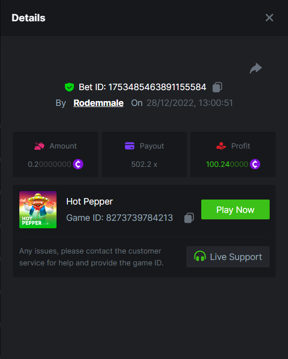 8. Hot Pepper x502.2 https://bc.game/#/sd/1107S13OXM52QB