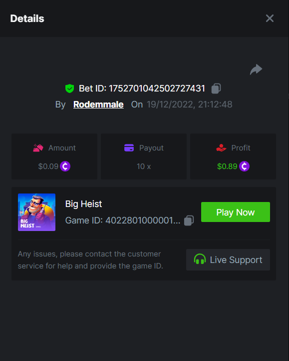 13. Big Heist x10 https://bc.game/#/sd/10ZMBN2ERIGQVN