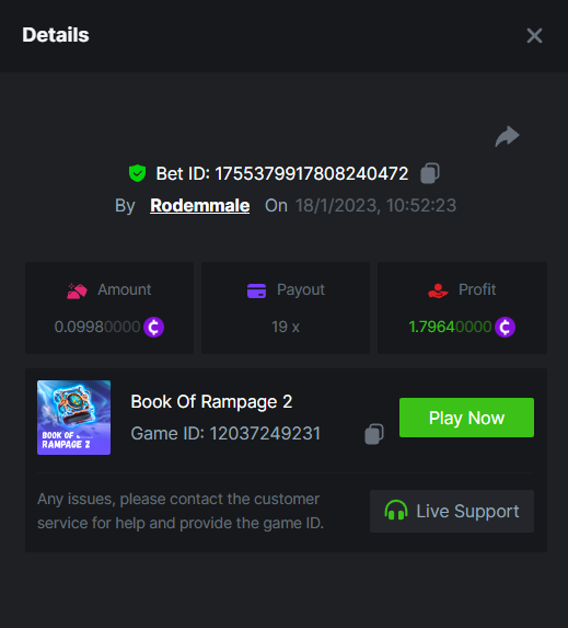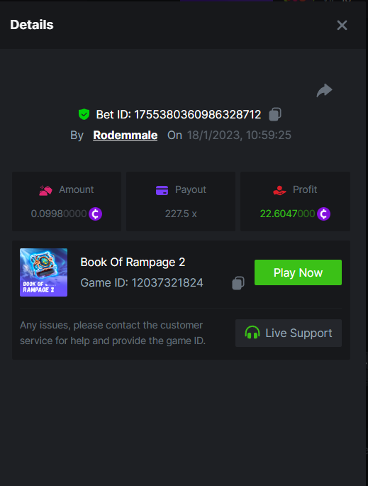 1. Book of Rampage 2 https://bc.game/#/sd/111NLDG8OVPNO3 x19 https://bc.game/#/sd/111NLT5EQKOKR7 x227.5