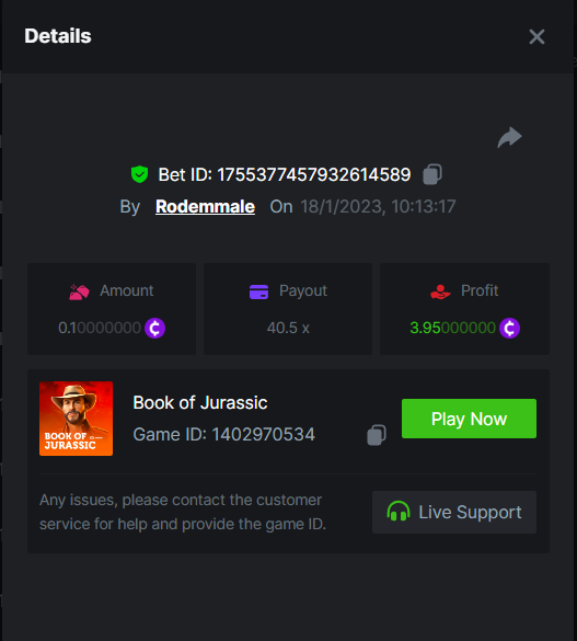 3. Mega Crown https://bc.game/#/sd/111NHG98A5QXOZ x460 Book of Jurassic https://bc.game/#/sd/111NJ6TY3FLFYR x40.50