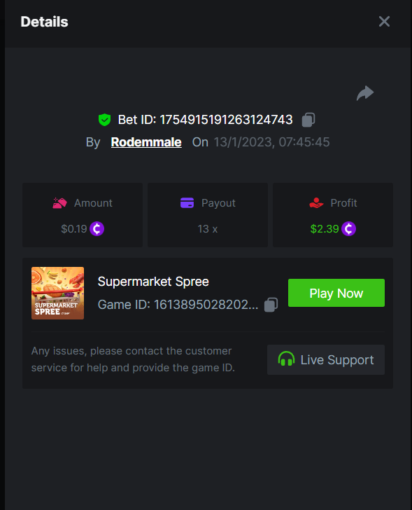 4. Supermarket Spree x13 https://bc.game/#/sd/111AVUG5CP3H1V Legendary Monkey King x24.2 https://bc.game/#/sd/111B9X6MQS0ZYR