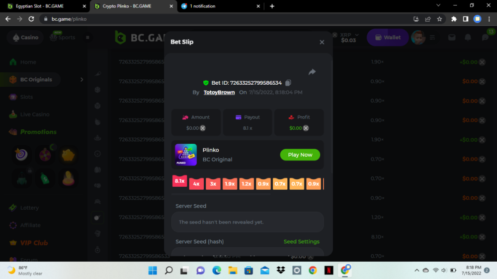 Game:Limbo Hunt: x100 and the last two numbers in the bet id must be 10