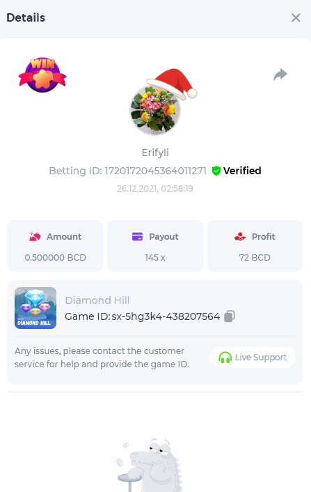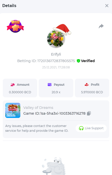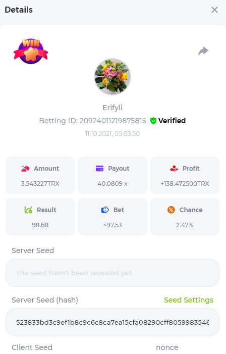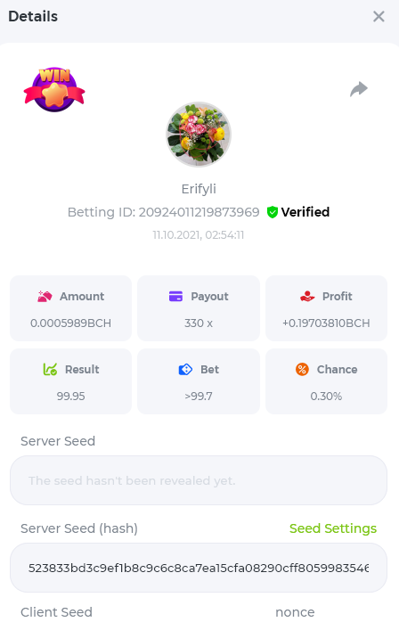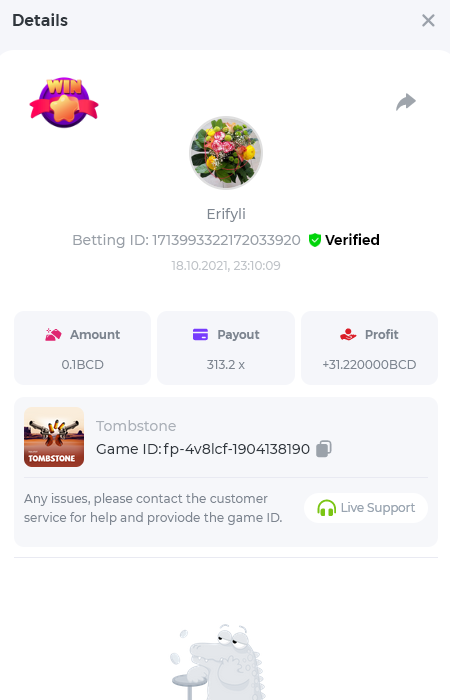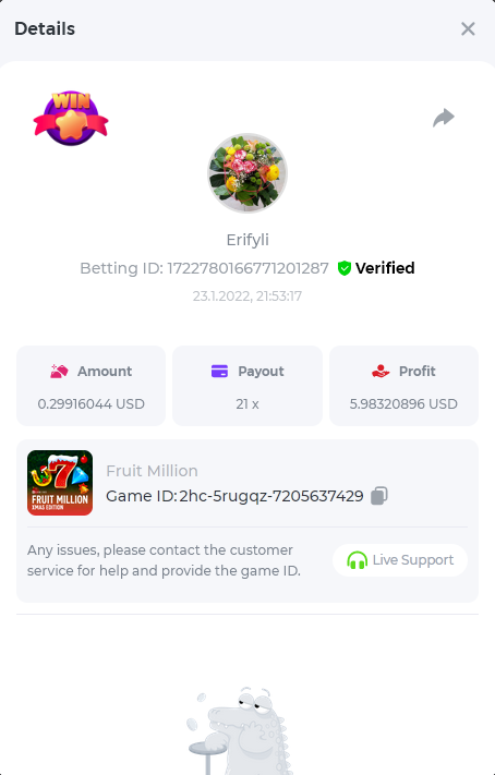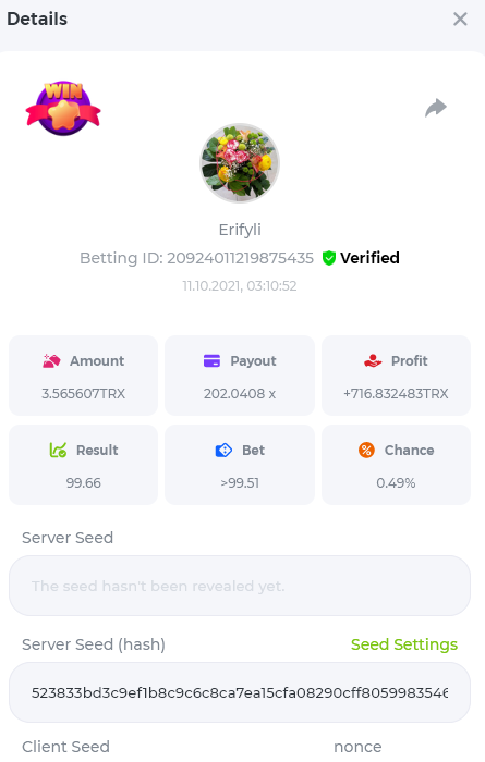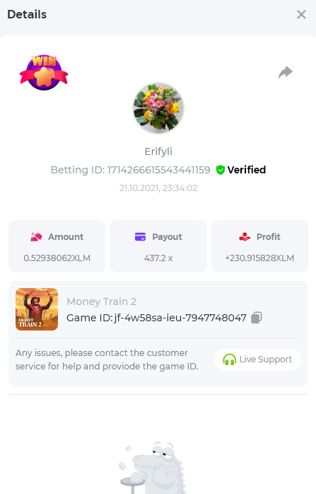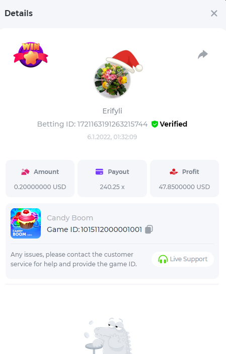 Betting ID: 1721163191263215744 240,25x Betting ID: 1721165915790515072 72,80x Betting ID: 1721167849602742791 309,10x Betting ID: 1721166916477145216 116,40x
