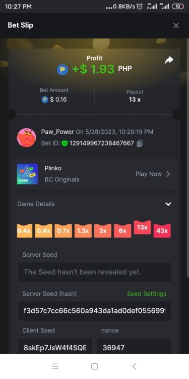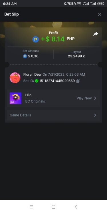 Ang paborito kong laro sa bc.game ay HiLo.. dito ko napatunayan na mas may disiplina ako sa sarili pag husto ang aking tulog.. Dahil kapag may sapat akong oras ng tulog, naiiwasan ko ang pagiging gahaman.. pag kulang kase Ang tulog ko, kahit malaking multiplier na, tuloy pa din ako sa pagpili Ng baraha hanggat hindi nauubos ang skip.. that's all, thank you!..