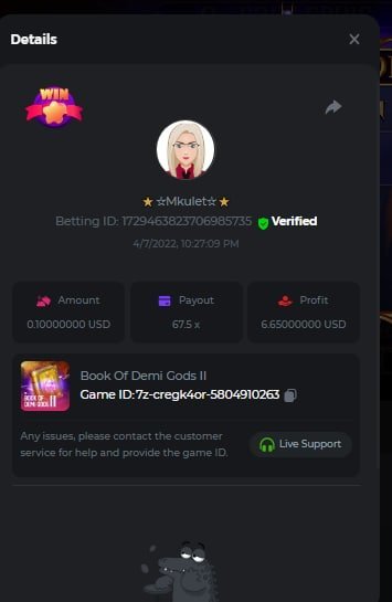 $4k Top Tier Roulette Challenge #15 Maligayang pagdating sa kamangha-manghang Las Ve... ikalabinlimang Top Tier Challenge! Ang kaganapan sa linggo ay sa aming in-house na Roulette Single Player, na may premyong pool na hanggang $4,000. Ang roulette at swerte ay may pagkakatulad: ang mga ito ay kaswal at may kaunting posibilidad na mangyari, ngunit maaaring mangyari at habulin ang mga hindi inaasahan. Ano ang Hamon? Ang mga kalahok ay dapat manalo ng maraming magkakasunod na taya hangga't maaari sa pamamagitan ng pagpili ng kulay na Pula o Itim (Sa in-house na laro ng Roulette Single Player ). Ang magkakasunod na taya ay dapat magkapareho ng kulay upang mapatunayan ang entry. Ang ranggo ay matutukoy sa pamamagitan ng pinakamalaking dami ng magkakasunod na taya, ang pinakamahabang sequence ay nasa unang puwesto at sunod-sunod. Kung sakaling makatabla, ang kalamangan ay ibibigay sa pinakamataas na average na taya sa dolyar. Kung sakaling makatabla muli, ang unang taya ay magkakaroon ng kalamangan. Kaya't manatiling kalmado at ilagay ang iyong mga taya, dahil kung ano ang mangyayari sa BC, mananatili sa BC! Minimum na VIP Tier Dapat ay VIP04 o mas mataas para makapasok sa hamon na ito. Pinakamababang Taya Manalo ng hindi bababa sa 3 magkakasunod na taya upang maging kwalipikado, na pinipili ang kulay na Pula o Itim (Ang magkakasunod na panalo ay dapat magkapareho ang kulay). Pinakamababang Sukat ng Taya $0.50 USD katumbas Mga Kwalipikadong Barya Lahat ng mga barya ay karapat-dapat (maliban sa JB/BCL) PRIZE POOL at REWARD BREAKDOWN Paano Pumasok I-access ang laro upang piliin ang iyong Bet ID, mag-click sa icon ng Ibahagi (↷) at pagkatapos ay Kopyahin ang link. Bumalik sa paksa, i- paste ang link sa field na "Tumugon sa paksang ito..." Hal: https://bc.game/sd/?sd=10HF4NTB79MKNN Sa parehong post, mag- upload ng screenshot ng iyong panalo sa pamamagitan ng pag-click sa game ID WITH VIEW IN USD mode ENABLED (maa-access sa ibaba ng dropdown menu para sa iyong wallet sa itaas, at Magsumite ng Tugon. Tapos na! Sa paraang ito, matitiyak namin na ang iyong Talagang naabot ng taya ang pinakamababang kinakailangan sa oras ng paglalagay nito: Link: https://bc.game/sd/?sd=10HF4NTB79MKNN Mangyaring pagsamahin ang lahat ng iyong mga hit nang magkasama sa ISANG post. I-edit ang iyong kasalukuyang post para sa mga karagdagang hit, huwag gumawa ng bagong post. Ang mga taya ay dapat na mai-post sa loob ng 24 na oras ng paglalagay ng taya upang mapanatiling patas ang mga bagay para sa lahat. Ang mga taya ay dapat gawin sa loob ng tinukoy na window ng oras na nakasaad sa itaas. Awtomatikong mala-lock ang thread na ito kapag tapos na ang yugto ng panahon. Isang (1) entry bawat sambahayan . Ang sinumang makikitang nagtatangkang manalo ng maraming premyo ay madidisqualify sa hamong ito pati na rin sa lahat ng mga hamon sa hinaharap. Ang hindi pagsunod sa mga tagubilin ay magreresulta sa iyong pagsusumite na walang bisa. Sa pagpasok sa hamon na ito, kinikilala mo na ang BC.Game ang may pinal na desisyon sa mga resulta at pagkakalagay. Ang mga pagbabayad ay gagawin sa loob ng 72 oras pagkatapos makumpleto ang hamon, mangyaring maging mapagpasensya, ipinapangako namin sa iyo na hindi namin nakakalimutan. Sinusuri namin at i-double check upang matiyak na matatanggap ng mga nararapat na nanalo ang kanilang premyo. Ang mga premyo ay babayaran sa BCD. Good luck sa lahat! ipost ang iyong entry sa Link na toh https://forum.bc.game/topic/8916-4000-top-tier-roulette-challenge-15/