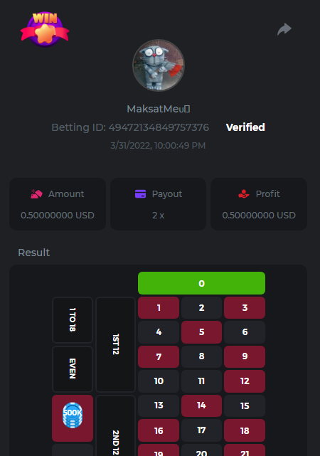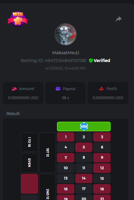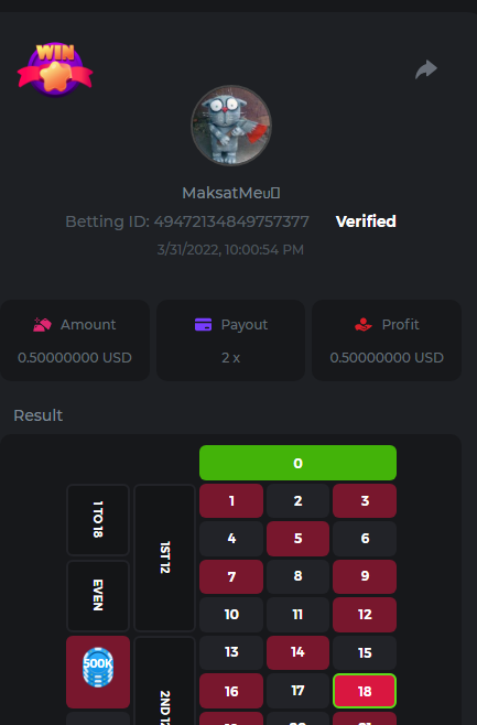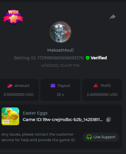 Medium Get a minimum 10x multi on Play&Go Easter Eggs slot . https://bc.game/sd/?sd=10ID17AZWJCM4Z 2. Win a bet in Roulette Single with betting on 0 only (36x). https://bc.game/sd/?sd=10ID1DLXXIXUKZ 3. Get a 76x on Plinko. https://bc.game/sd/?sd=10ID1MGQUGG55F 4. Get a minimum 60x multi on Wazdan Power of Gods™: Medusa Easter slot. https://bc.game/sd/?sd=10ID3Y346OJYTV 5. Win a bet on Keno Single by selecting numbers 7, 30, and 8, Medium risk. (50x). https://bc.game/sd/?sd=10ID4CO5NLF02B 6. Win a bet by getting a natural Blackjack (A+K/Q/J/10) with only red cards in it. https://bc.game/sd/?sd=10IPLLWTC77TAR