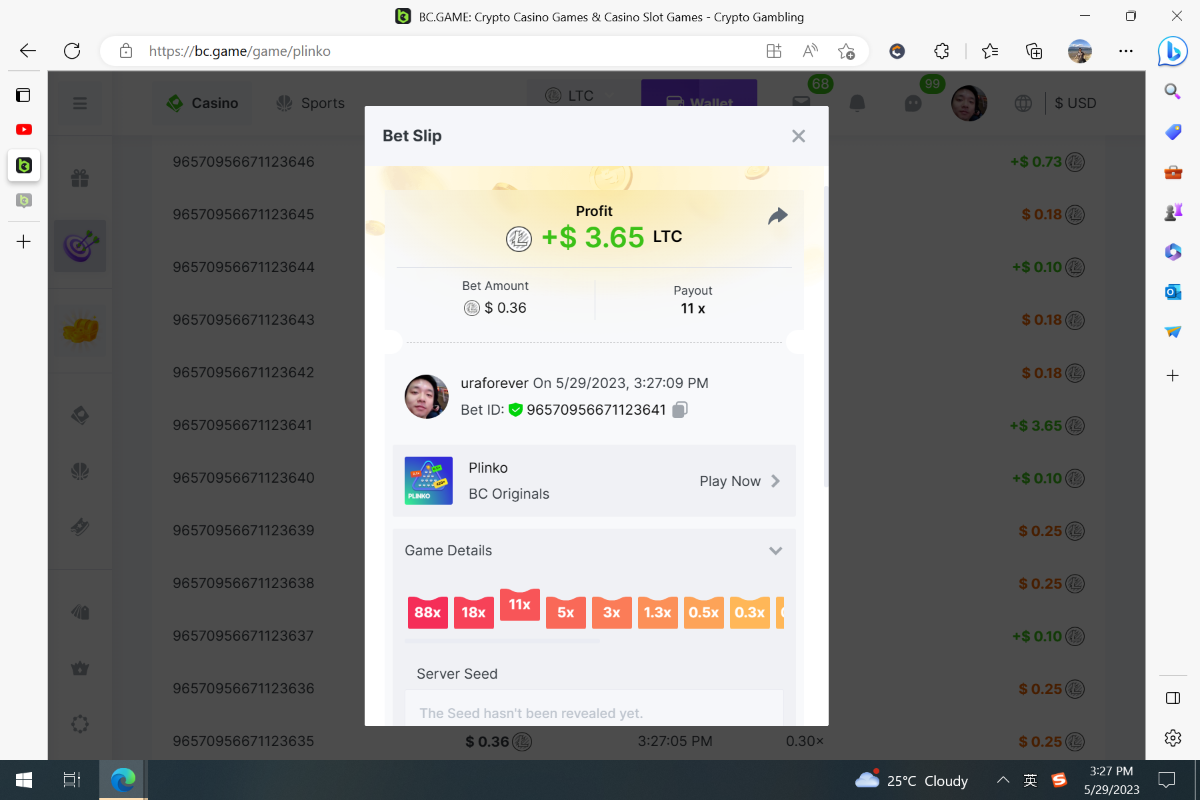 Plinko: 11X bet ID: 96570956671123641 13X Bet ID: 96570956671123707 29X Bet ID: 96570956671125067 43X Bet ID: 96570956671125092 -