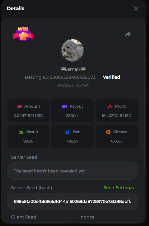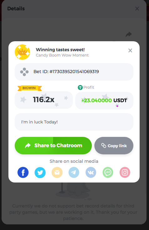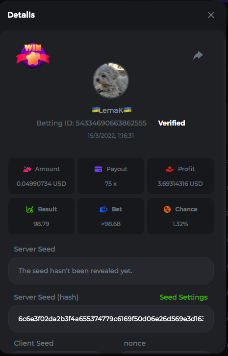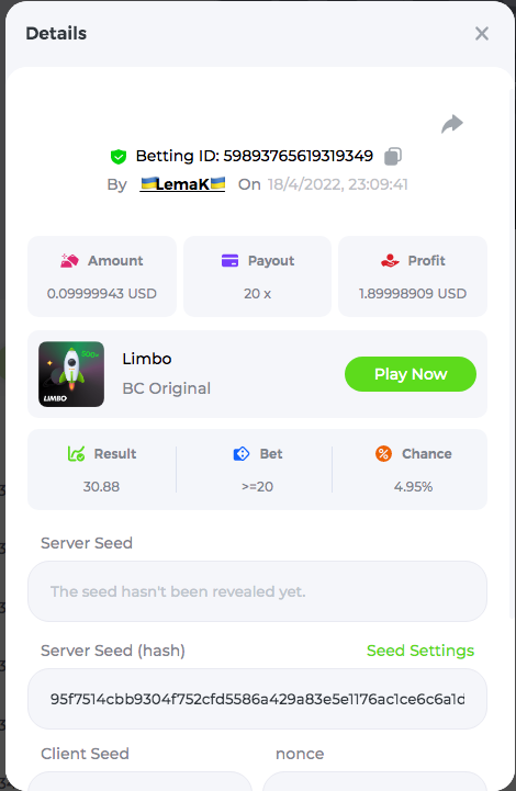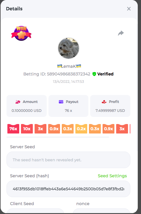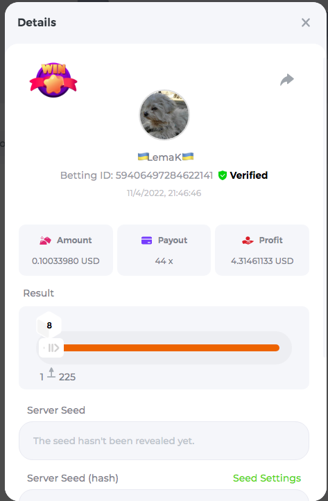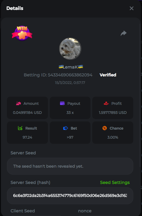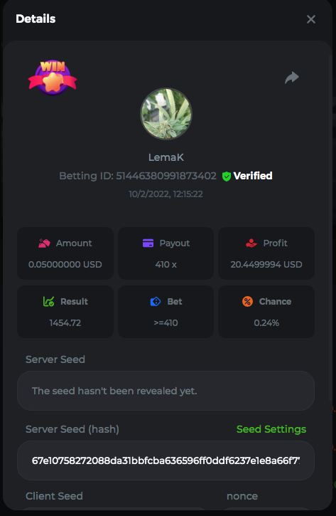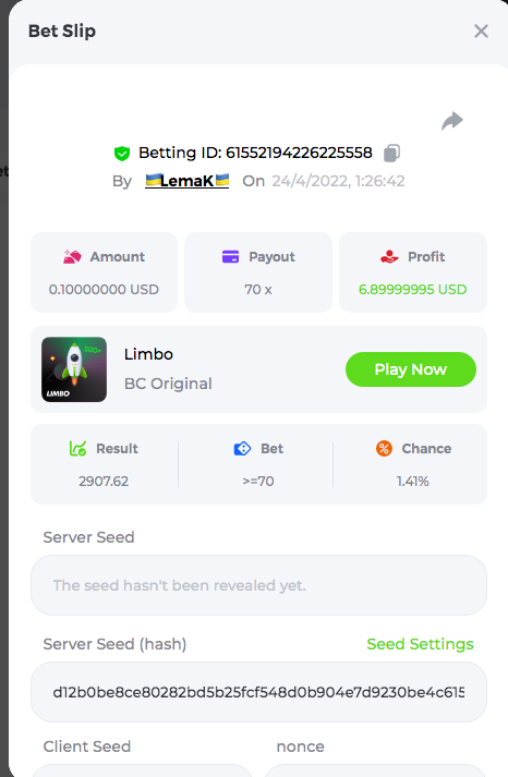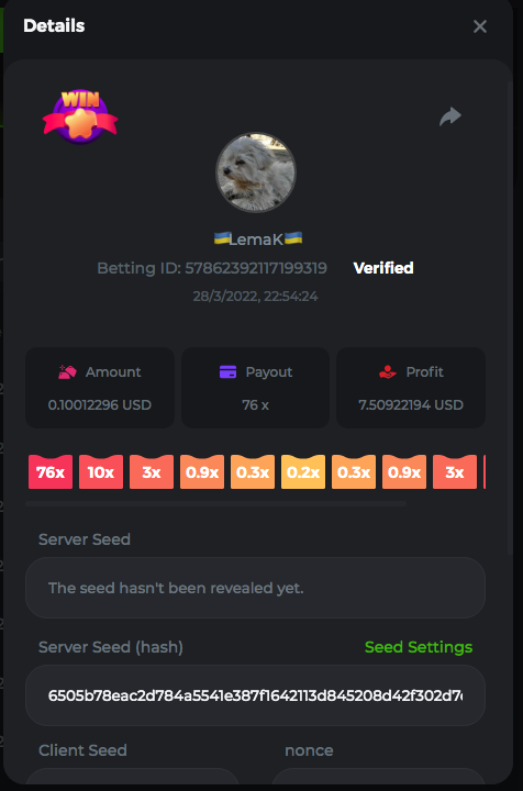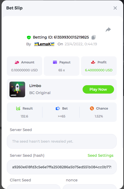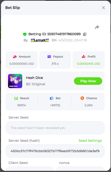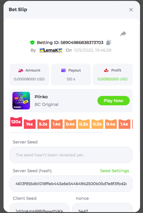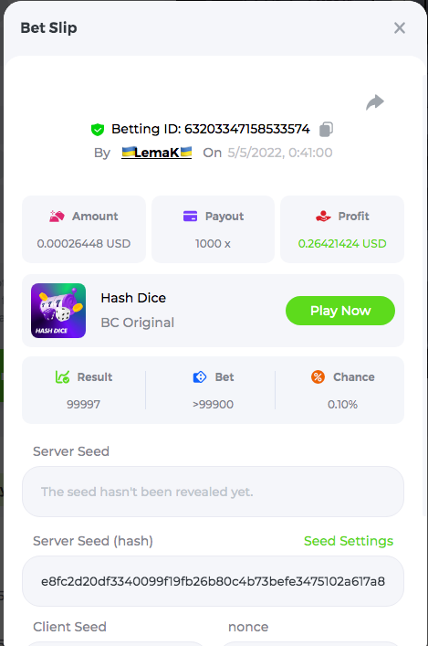 3.96x | 17.10x | 48x | 50x | 81.50x | 100x | 180x | 259x | 350x | 400x | 450x | 500x | 710x 3, 96X Bet ID: 64299452877242664 https://bc.game/sd/?sd=10KDY3OZQJJ3F7 17,10X Bet ID: 64299452877242675 https://bc.game/sd/?sd=10KDYBBI1S5T03 48X Bet ID: 64299452877242838 https://bc.game/sd/?sd=10KDZ8194K8ZRN 50X Bet ID: 64299452877242966 https://bc.game/sd/?sd=10KDZY8HO8V7YR 81.5X Bet ID: 64368069274763513 https://bc.game/sd/?sd=10KE2FNI28NYMR 100X Bet ID: 64373068616696117 https://bc.game/sd/?sd=10KE5W9412IUXF 180x Bet ID: 64373068616696401 https://bc.game/sd/?sd=10KE7K7H2FDO9F 259X Bet ID:64379850370056741 https://bc.game/sd/?sd=10KF9J9RDL85JN 350X Bet ID: 64435044994777133 https://bc.game/sd/?sd=10KFEPQDNCTRTF 400X Bet ID: 64437875378225669 https://bc.game/sd/?sd=10KFIYNK645HCJ