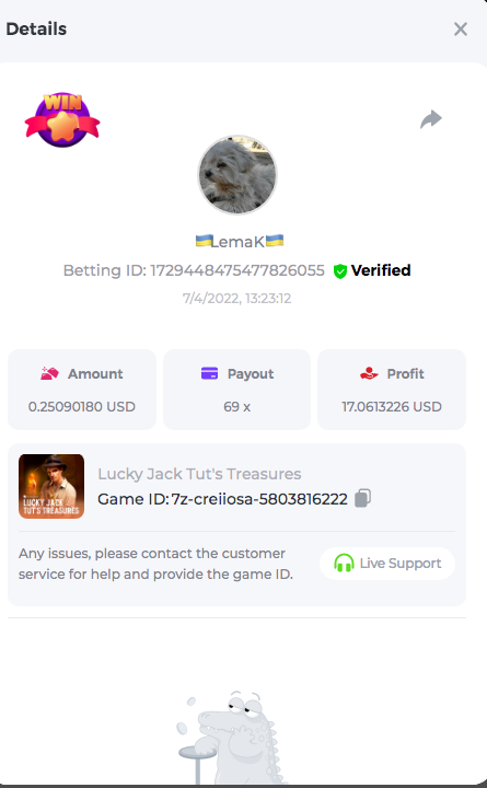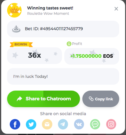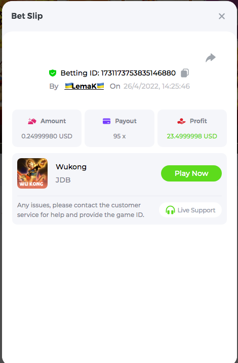 Easy Follow BCGame on Instagram (screenshot & IG username required). Post a photo or video on Instagram and tag BC.Game official profile (link to post & IG username required). Follow BCGame on Twitter (screenshot & twitter handle required). Like & Retweet the latest BC.Game Twitter post, tag at least 3 friends (link to post & twitter handle required). Follow BCGame on Facebook (screenshot & FB username required). Win a bet in Cave of Plunder on 7.50x payout (Completing all book symbols). Win a Sports bet with minimum odds being 1.3x (singles only) 1$ base min amount. Get a minimum 20x multi on Amatic Lady Fruits 100 Easter slot. Get a minimum 30x multi on Gamomat Ramses Book Easter Egg slot. Enable 2FA for your BC.Game account (If it's already activated, keep it activated during event week). 6- Betting ID: 29437972134757911 7,5X https://bc.game/sd/?sd=10IASKLP66OA37 10- Medium Get a minimum 10x multi on Play&Go Easter Eggs slot . Win a bet in Roulette Single with betting on 0 only (36x). Get a 76x on Plinko. Get a minimum 60x multi on Wazdan Power of Gods™: Medusa Easter slot. Win a Sports bet with minimum odds of 2x (singles only) 1$ base min amount. Win a bet with Straight Flush in Video Poker (60x). Win a bet on Keno Single by selecting numbers 7, 30, and 8, Medium risk. (49.50x). Get a minimum 90x multi on Big Time Gaming White Rabbit slot. Win a bet by getting a natural Blackjack (A+K/Q/J/10) with only red cards in it. Get a minimum 100x multi on No Limit City Bonus Bunnies slot. 2-Betting ID: 49544011127455779 36X https://bc.game/sd/?sd=10IASSDKQV6VWZ 3- Betting ID: 58904986838372342 https://bc.game/sd/?sd=10IDAWFW4V69ZN 6. Betting ID: 60139442043617979 https://bc.game/sd/?sd=10IGN5SIO4Y977 7- Betting ID: 60185479798063607 https://bc.game/sd/?sd=10IDA1L5IFAJV7 Hard Get a 49.50x on Wheel (50 segments, High risk). Get a 420x on Plinko (14 rows, High risk). Win with a minimum 500x multi on Limbo. Get at least 300x multi on BGaming Hello Easter slot. Win with a minimum 999x on Crash. Get a minimum 100x multi on Pragmatic Chicken Drop slot. Get a minimum 100x multi on Push Gaming Fat Rabbit slot. Post a winning bet with 21 mines and 3 diamonds on Mines game, (569.25x). Win a bet on Keno Single by selecting numbers 10, 11, 12 and 13, High risk, (259.00x). Win a Sports bet with minimum odds of 10x (any bet allowed) 1$ base min amount. 1- Betting ID: 54674624440434790 https://bc.game/sd/?sd=10IAMWL9R3JKLV 9- Betting ID: 60041787372208421 https://bc.game/sd/?sd=10IAMIBHT00VF7