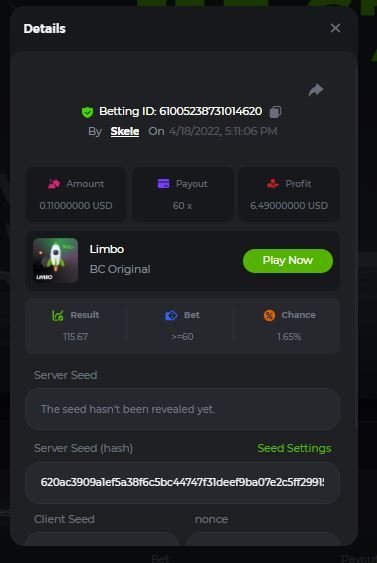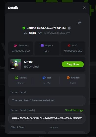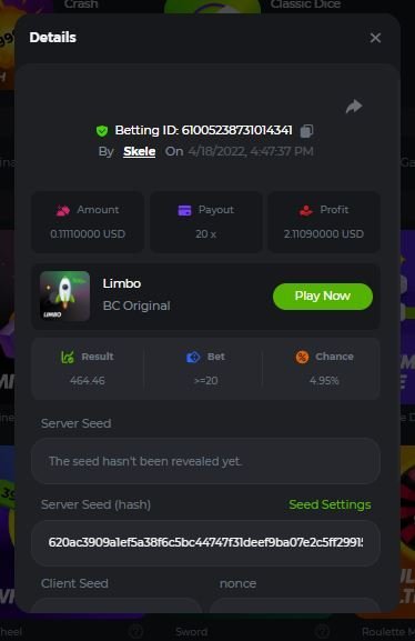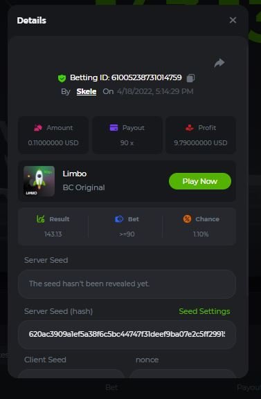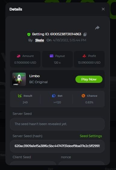 8. So this would be more a live either in a big group but it would be more fun as like the final of some challenge or something but get 2 or 3 poeple playing and like on the game show price is right, have them guess a payout for limbo. After everyone has guessed the host with the screen shared will do one round of limbo to see where it crashes the one closes to their number wins. This could be done in like groups of 3 with a winners round or in a elimination brackets style. I just think it would be harder and more fun to make them have to pick an actual payout ahead of time instead of just going for highest. And they all get the same result because it is the host that runs the round of limbo so its impossible for them to cheat. Unless they want to use price is right strategy and if someone says 100x they could go 99x and get all the numbers 1-99 ahead of the opponenet. @VlkyrieThis might be a good idea for some flash event or something too, because of the picking of the number i don't think it would work for daily though .