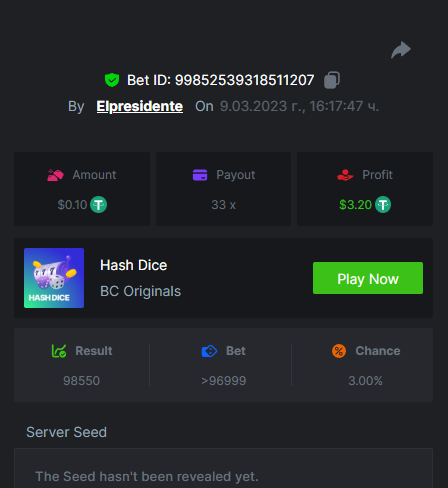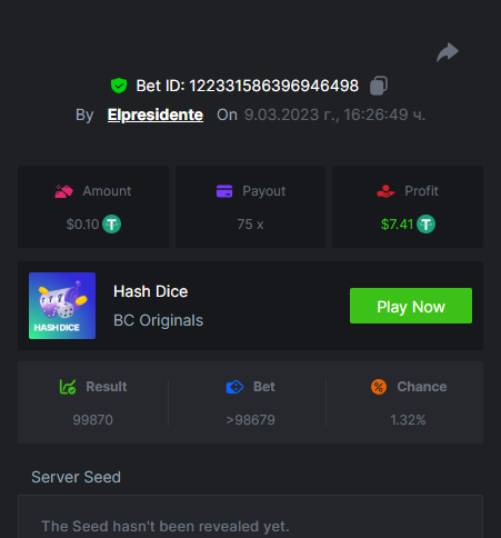 $1,500 Exclusive Weekend Hash Dice Prestige Challenge #76