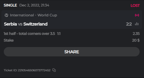 8. Challenge: Which team will win the match? i think your bet is not valid you should bet on winners and not corners