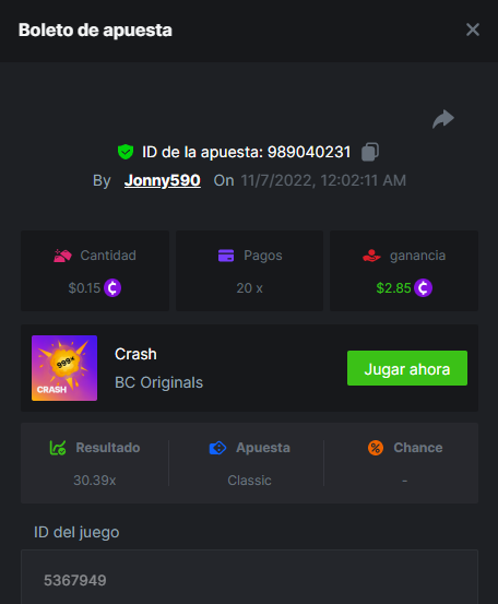 1. ID: 2202462108065607725 https://bc.game/es/sports?bt-path=%2F%3FbtBookingCode%3D826E68F
