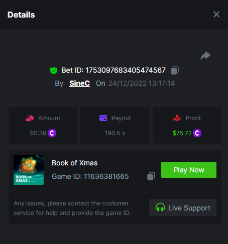5. Santa’s Wild Night 257.6 https://bc.game/#/sd/10ZX2V5PJA0PHV Book Of Elves 128.5 https://bc.game/#/sd/10ZX473Y0NJF9V Wild Santa 2 45 https://bc.game/#/sd/10ZX8YOF4B12J7 Book of Xmas 190.5 https://bc.game/#/sd/10ZX686WZ5A977
