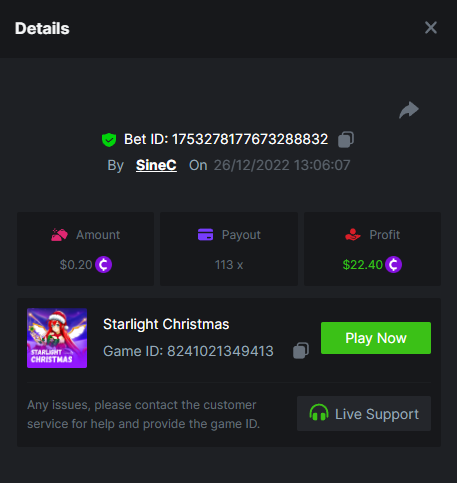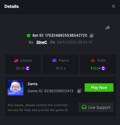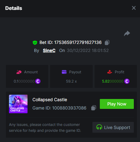 4. Treasure-Snipes: Christmas 60 https://bc.game/#/sd/110C4GPIJS3GNN Christmas Reach Bonus 16 https://bc.game/#/sd/110C5DFYMMQK2B Ice Mania 21 https://bc.game/#/sd/110CIN4WDGZYTV Collapsed Castle 59.2 https://bc.game/#/sd/110CJ2XKDYISK3 Fruit Super Nova 10 https://bc.game/#/sd/110CJIO2102J9V
