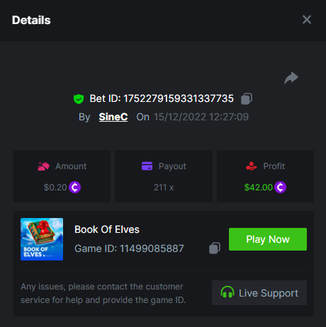 7. Book of Elves 211 https://bc.game/#/sd/10ZAS94LM9ARDF Book of Piggy Bank Riches 239 https://bc.game/#/sd/10ZAUE3ZVGOYS3 Wolf Gang - Golden Sands 34.6663 https://bc.game/#/sd/10ZB3213PM4DG3 Athena's Glory 51 https://bc.game/#/sd/10ZB465G7TDXXV Hut with Chicken Legs 45.4 https://bc.game/#/sd/10ZAW5FECXE1AR
