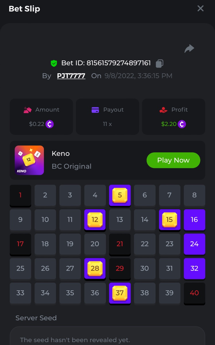 $2,500 Prestige Keno Multiplayer Challenge #45