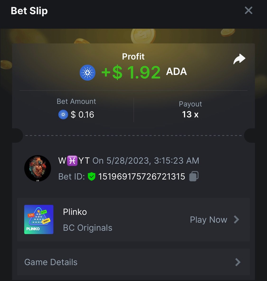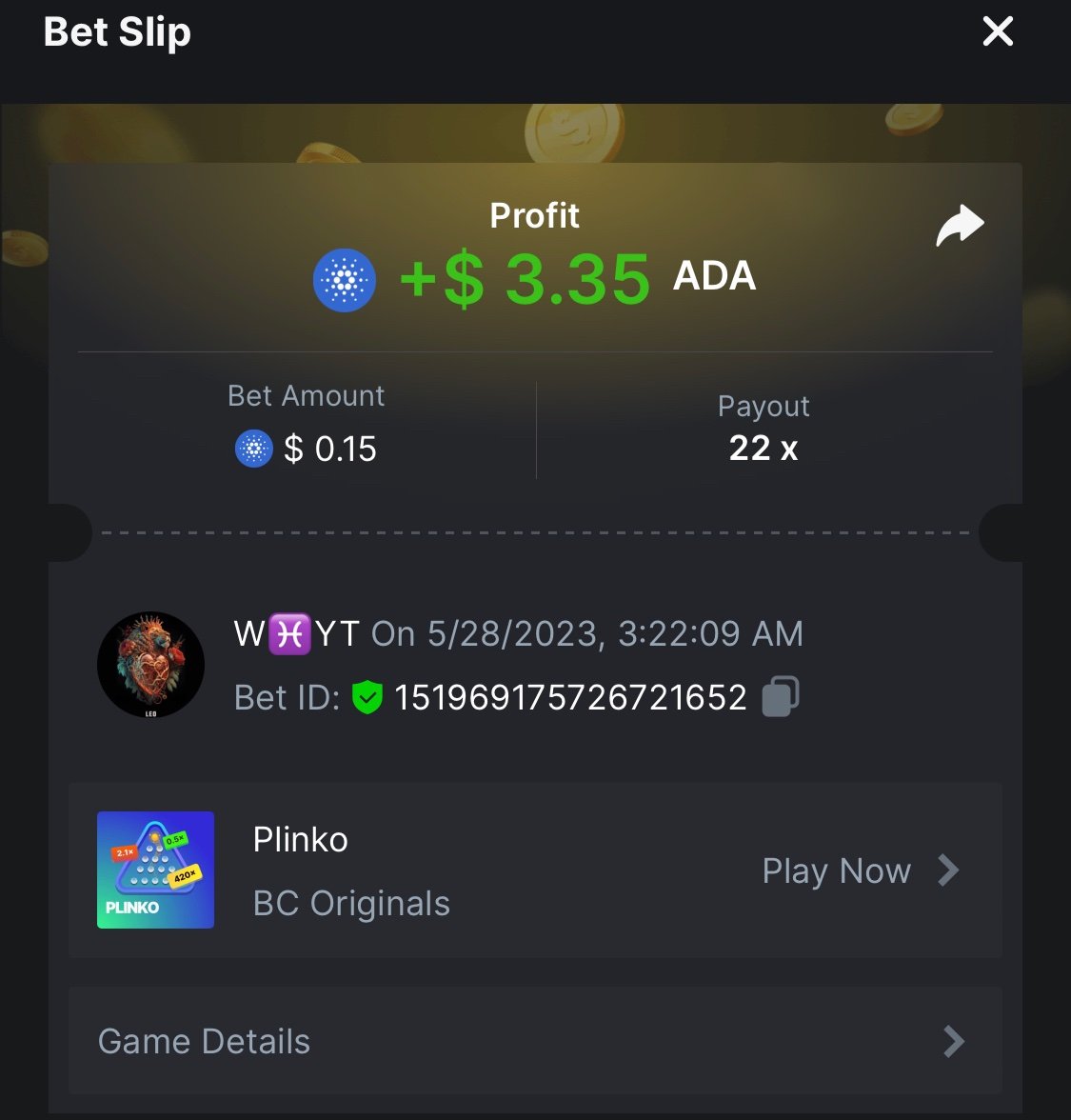 AKAPTUPADAICS replied to BCGame_Maxim's topic in VIP Challenges