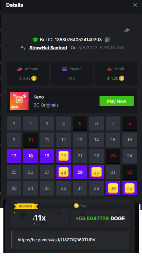 1. Bet Link: https://bc.game/#/sd/11NU8QGK83WRZJ Bet ID: 404751391488228050 User ID: 1810686