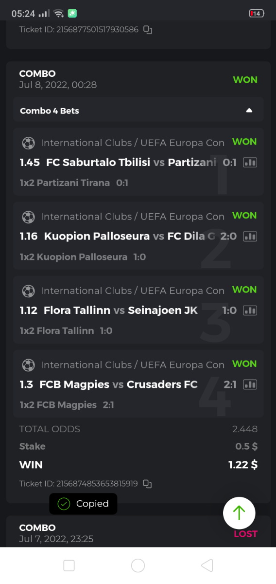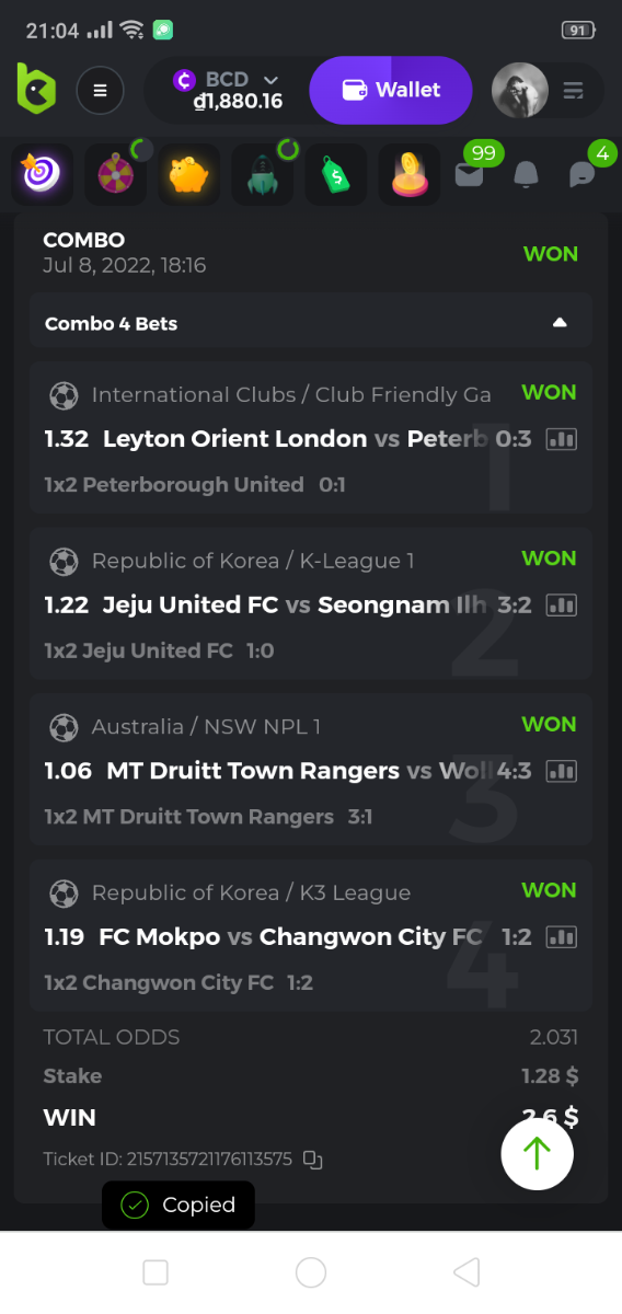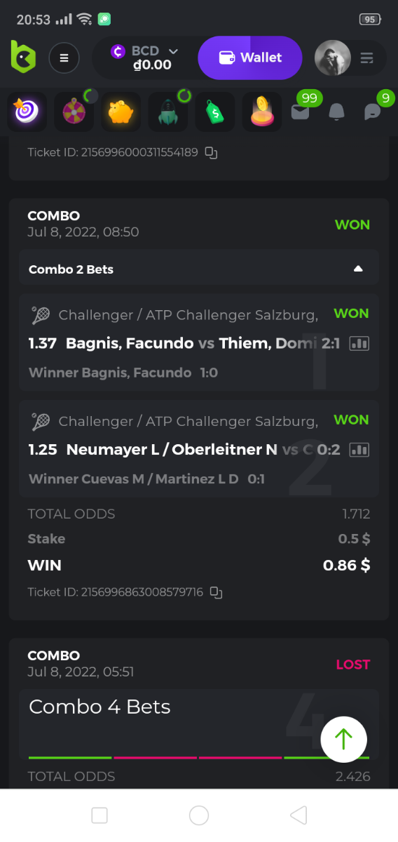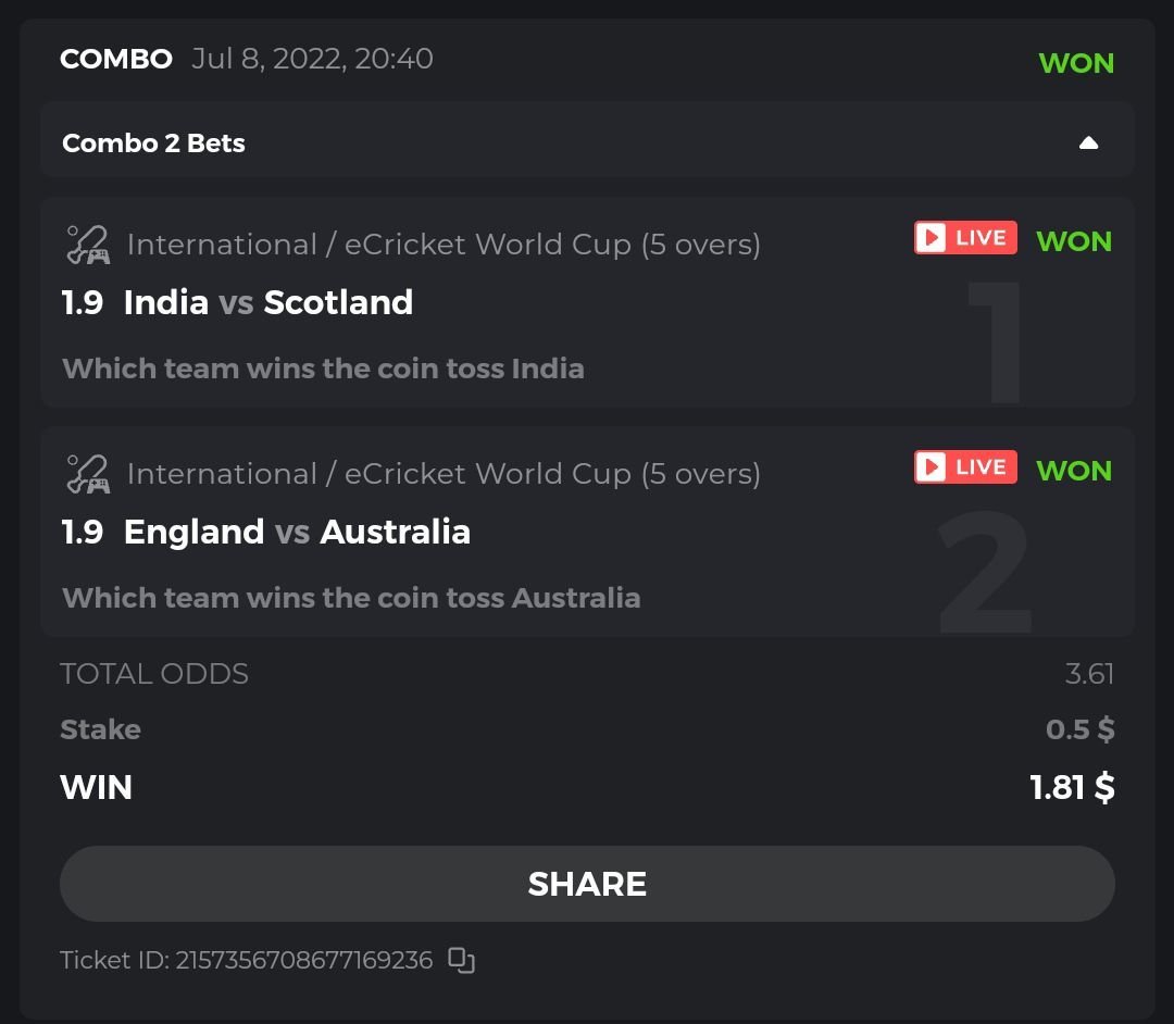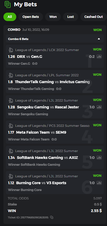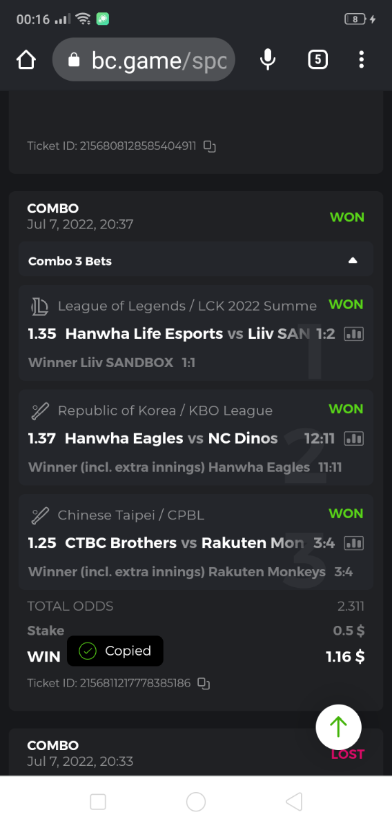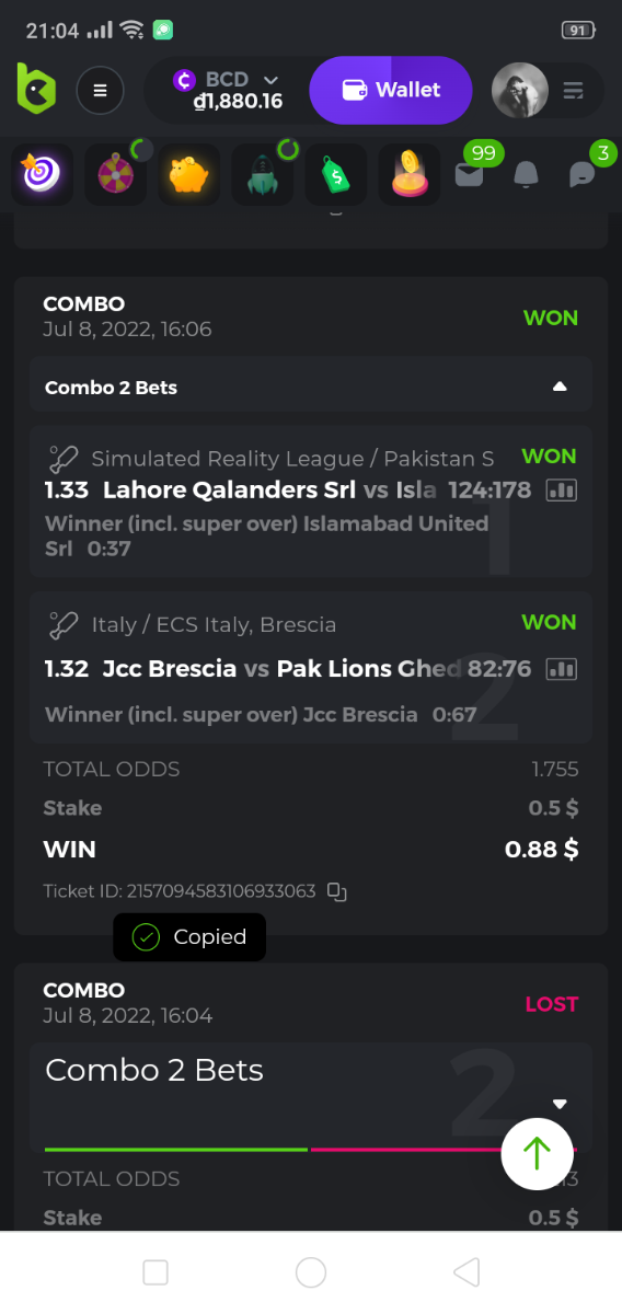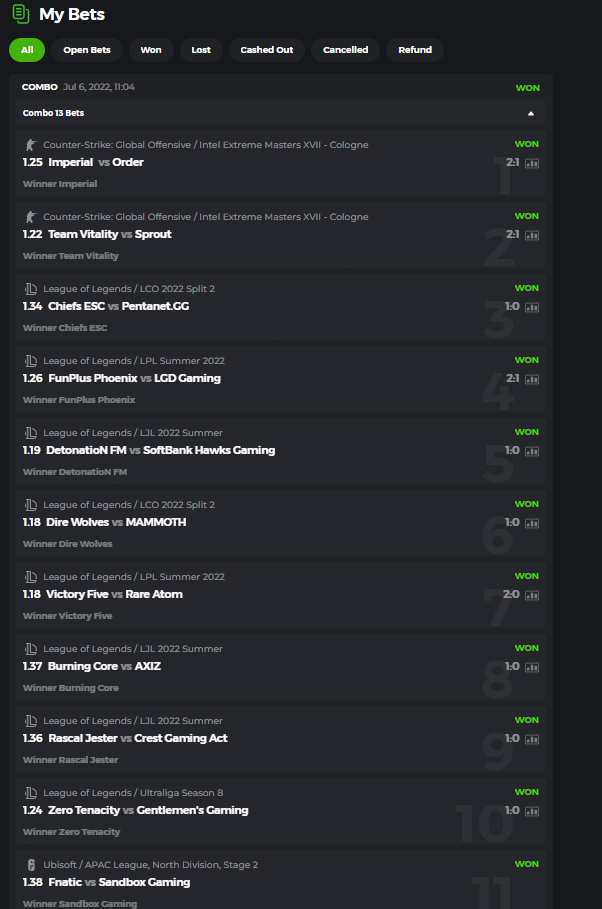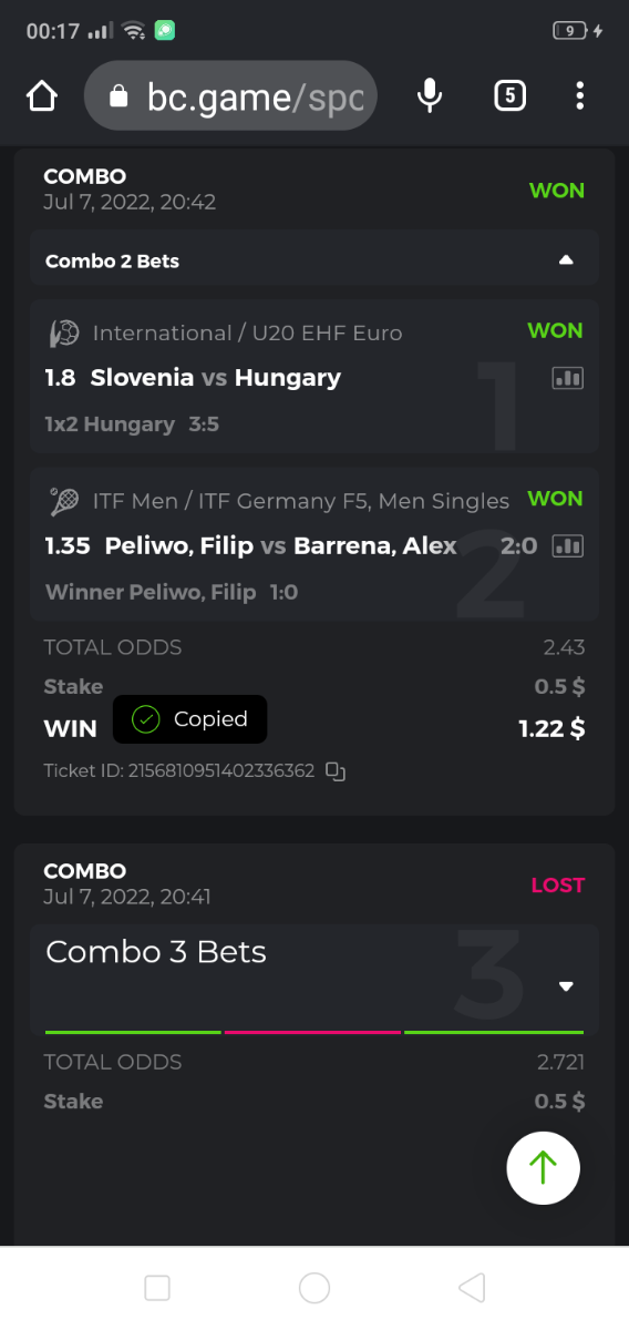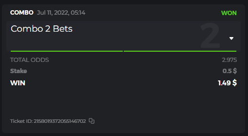Moderator Mat Posted July 5, 2022 Moderator Share Posted July 5, 2022 $250 - BC.GAME SPORTS PARLAYS CHALLANGES #11 Start: 05, July 00:00 UTC Ends: 10, July 23:59 UTC Hello, ladies and gentleman! Sports Parlay Challenges #5! With a prize pool of $150, the Top 5 takes home a grand prize, and the remaining $40 will be split among all other entrants! What is the challenge? Place a Sports Parlay/Combo Bet to qualify for the challenge Only 1 parlay per match. A parlay consists of two or more sports bets on a single ticket with a higher multiplier. The ODDS for each game will be added up and counted as total points. Minimum VIP No Minimum VIP Level Minimum payment There is no minimum multiplier, however, only the top 5 winning parlay multipliers will win the grand prize! Minimum bet size Equivalent to US$ 0.50 Eligible currencies All cryptocurrencies are eligible (except JB) Rewards available 1st place.......$70 2nd place.....$50 3rd Place...... $30 4th Place...... $20 5th Place...... $10 6th Place...... $5 7th Place...... $5 The remaining $60 will be split among all other participants who meet the minimum requirements and minimum stake. How to enter: To participate, post your Ticket ID, along with your Parlay link, as a reply to this thread as follows: Link bet: https://bc.game/sports/?bt-path=%2F%3FbtBookingCode%3D561A9D1 + Ticket ID 2126602890796736992 If you don't know how to get your sports betting link, go here! Along with the screenshot of your accumulated ticket. Ticket ID 2126602890796736992 If a selection results in a void or push, the bet will remain eligible as long as it remains equal to or greater than a triple bet and meets the odds requirements. Bets withdrawn will not be counted. Hedging is strictly not allowed Please combine all your hits into a SINGLE post. Edit your existing post to get additional hits, don't create a new post. Bets must be placed during the time window specified above. This thread will automatically lock when the time period ends. One (1) entry per family. If someone finds multiple prizes, they will be disqualified from the challenge as well as all future challenges. Failure to follow the instructions will result in the cancellation of your submission. By entering this challenge, you acknowledge that BC.Game has final decision rights over results and placement. All prizes will be paid out in BCD within 72 hours of completing the challenge. Link to comment Share on other sites More sharing options...