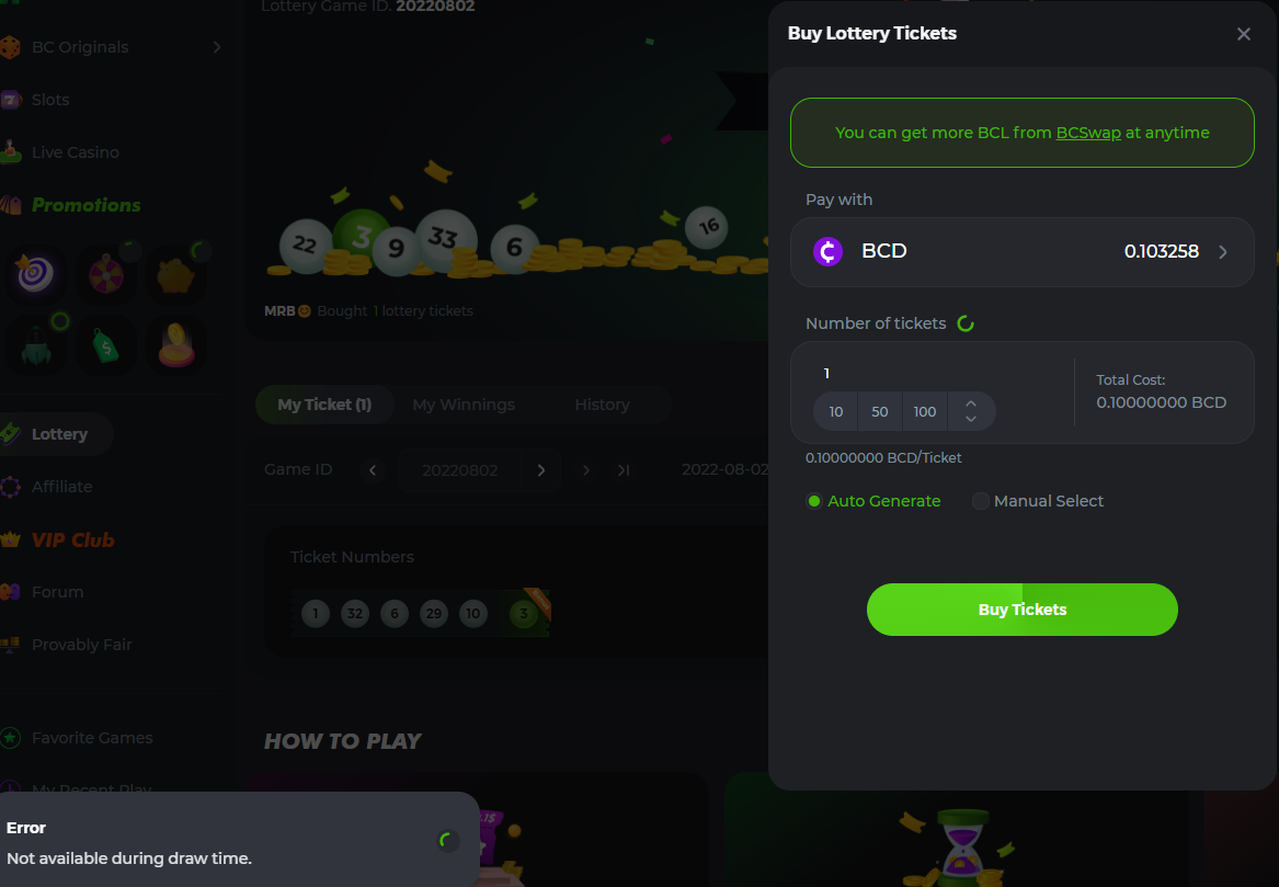 I was trying to buy some lottery tickets, and got an error saying it's not available during draw time. Almost 17 hours before next draw.